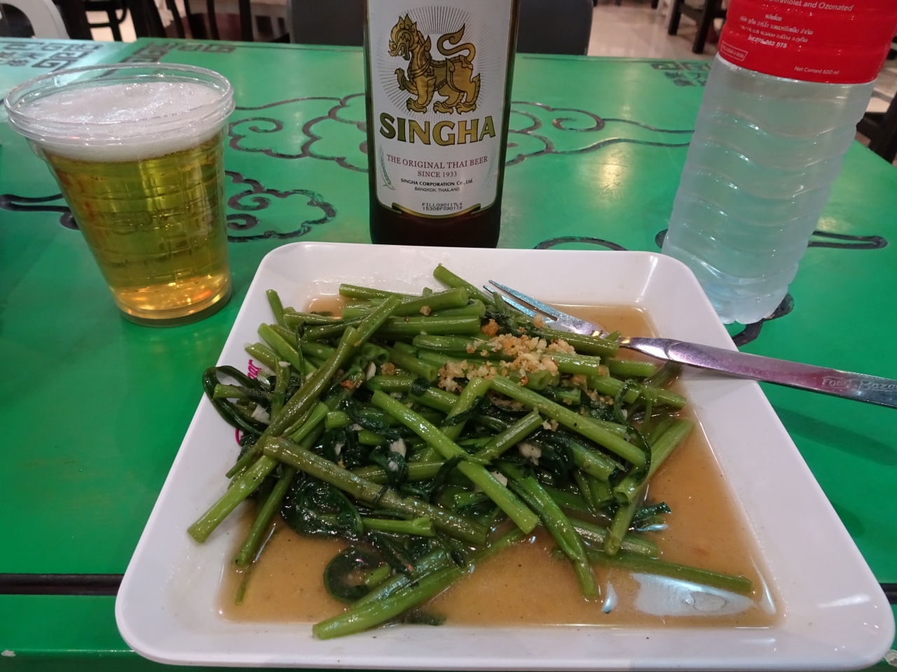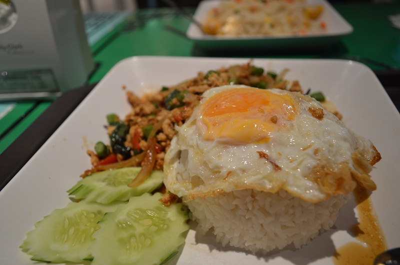 プーケット到着後の一発目の食事でしたので、ベタにパッガパオとトムヤムクン。ガパオは辛さを「ミディアム」でお願いしたのですが、それでも汗噴く辛さ。あぁ、タイに来たんだなと感じる至福の瞬間でした。