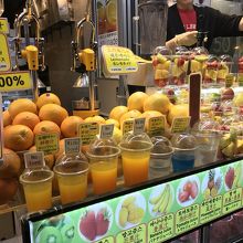 5月初旬に伺いましたが、スイカ、イチゴ、パイナップル、キウイ、マンゴ等のカットが並んでいて、頼むとその場でジュースにしてくれます(カットフルーツのままでも可能)。氷を入れたくない場合はその場で伝えればOK。イチゴをいただきましたが、そのまま食べるより甘さが増しているような。買い物疲れに最適かも。 閉じる投稿日:2017/05/21