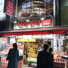 東大門ファッションタウンの通りにあるパン屋さん。ドゥータ!(DOOTA!)の手前に「BAKERY」との看板があります。