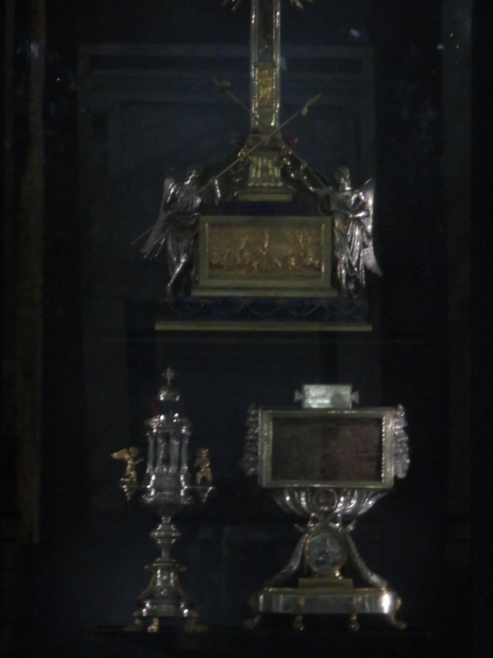 こちらの聖堂にはイエス様が架けられた聖十字架の木片、イエス様が架けられた聖十字架の札、イバラの冠の2本のとげが保管されていて 見ることができます