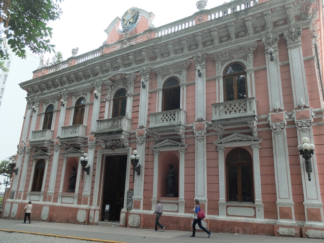 昔はサンタ・カタリーナ州の政庁だったと言う建物で、重厚なピンク色の外観が印象的。