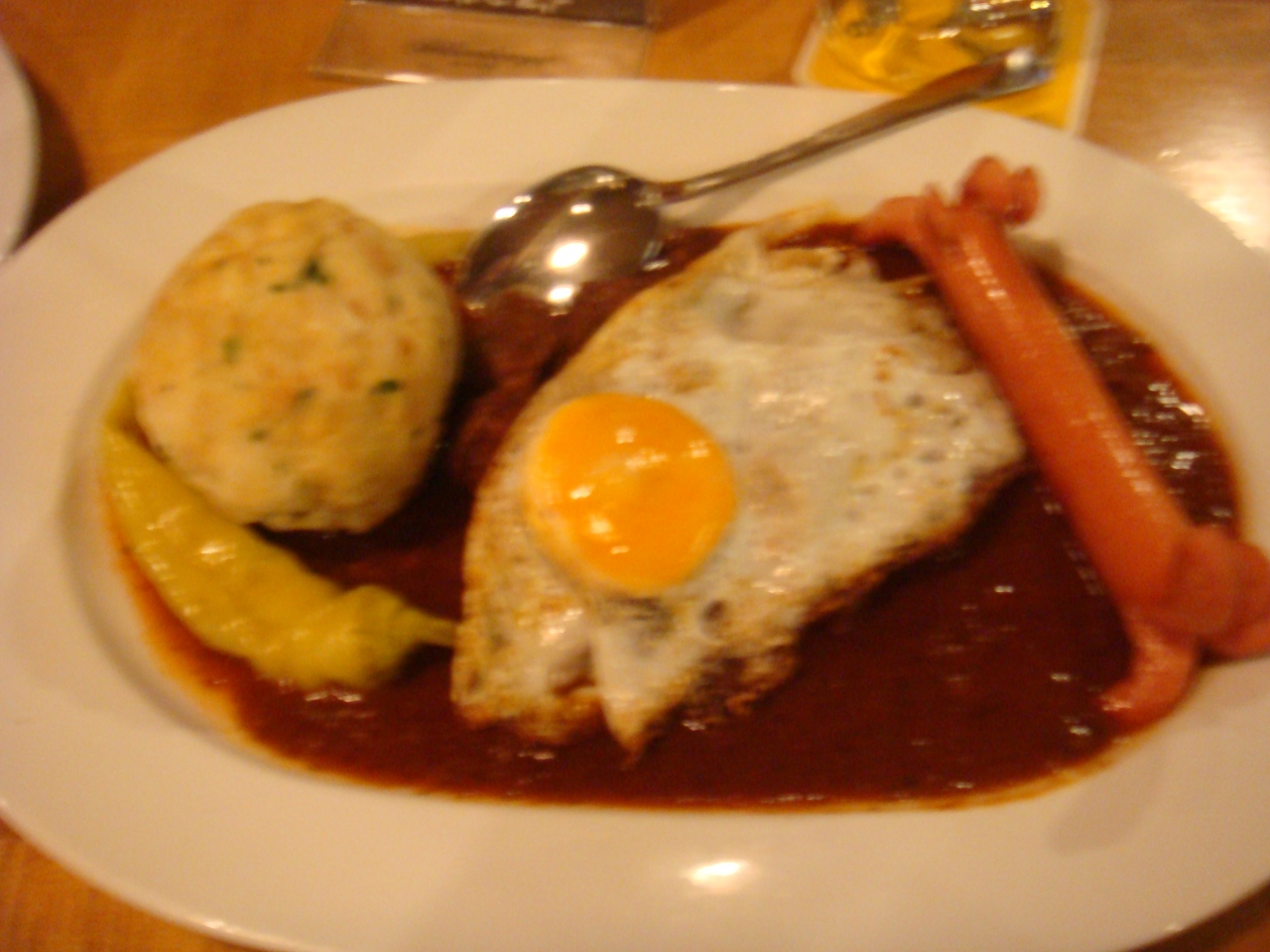 爆弾のようなダンプリン(笑)卵の下にビーフが隠れてます