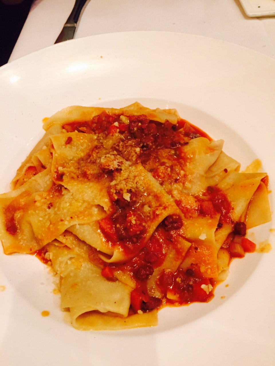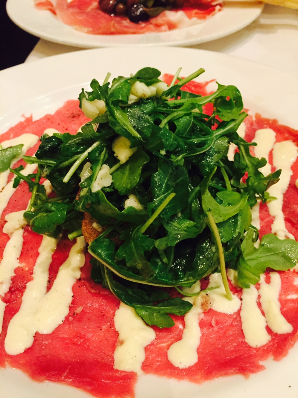 ケーブルカーが通るパウエルストリートにあるイタリアンでランチを楽しみました。彼はLonzino(生ハム$9)とPappar... 続きを読むdelle(ボロネーゼ$22)を、私はCarpaccio(カルパッチョ$14)とRisotto(リゾット$22)を注文しました。2人で税金とチップを入れて$80くらいでした。入り口付近はカフェのような雰囲気ですが、奥のダイニングは適度な重厚感があります。パウエルは人通りも多くがやがやしていますが、店に一歩入れば静かなものです。一点、アペタイザーが運ばれてきたのはメインを半分食べ終えた頃でした。そこがちょっと減点ですが、総合的にみて少し贅沢なランチを楽しむにはいいレストランです。 閉じる