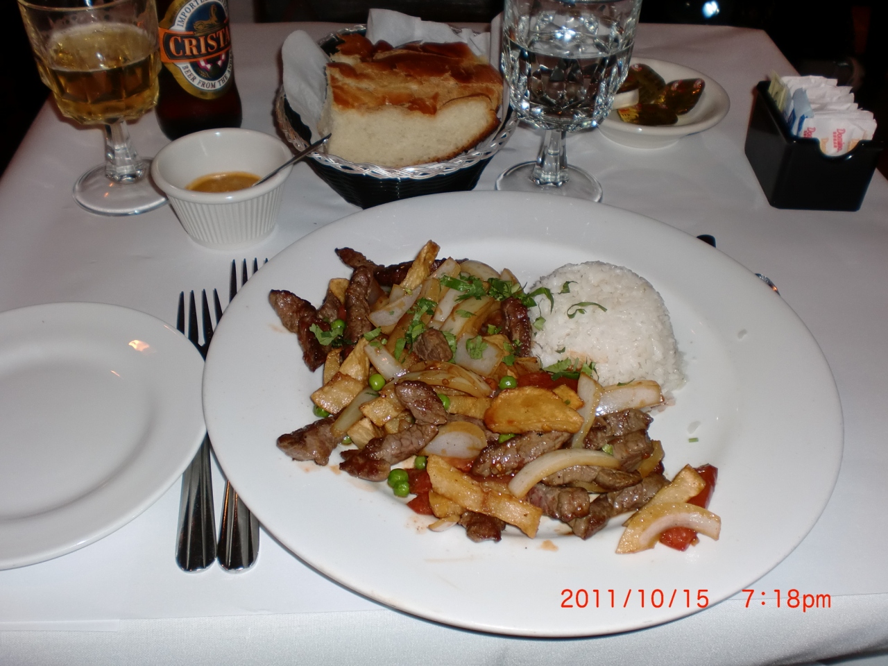 ペルーは日本人移民が多かったせいか料理の味付けに頻繁に醤油を使うそうで、その中で自分がオーダーしたのはロモサルタード(Lomo Saltado)という料理でした。自分の表現が妥当かどうかはわかりませんが、一言で言うと"ペルー版焼肉定食"だと思います。