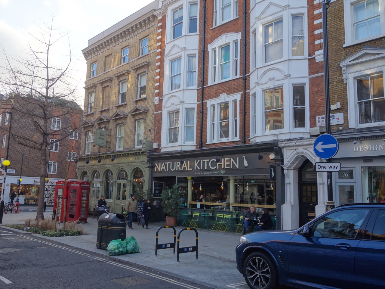 長居のできるカフェ。Marylebone High Street を歩いて,疲れを癒すところとして最適です。