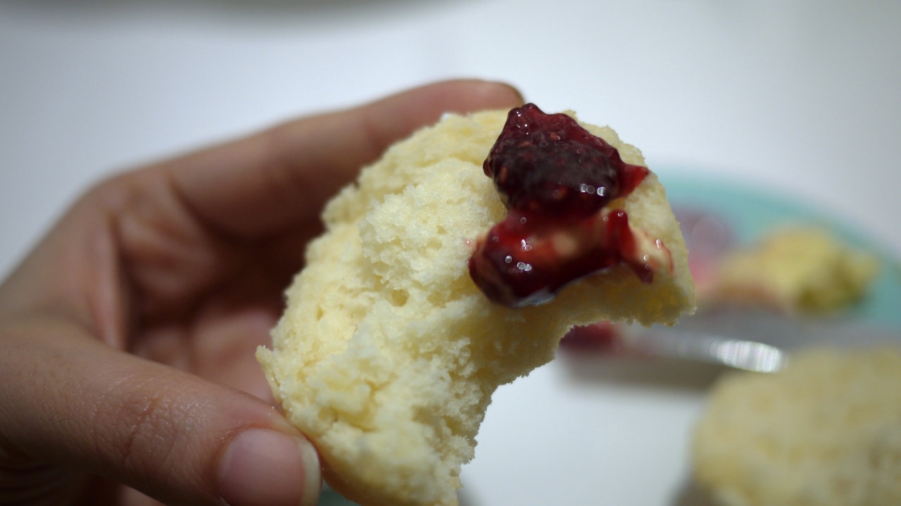 カットする際にホロッと崩れるほどサクっとした食感のスコーンは、レーズン入りとプレーン1つずつ。生地の塩気が強く、たっぷり塗ったはずのクロテッドクリームの存在感がやや薄く感じられました。ためしにクリームだけ口に含んでみると…限りなくなめらかなバターに近いような。存在感が薄く感じられたのもそのせいかも??