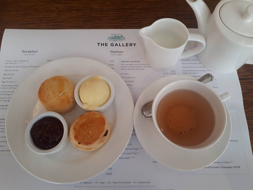 小ぶりのスコーン二つにクロテッドクリームとジャム、紅茶(ポットサービス)のセットでお値段は約15ポンド。天下のフォートナムメイソンだから仕方ない…と思いつつ、コスパを考えるとリピートはないなというのが正直な感想です。
