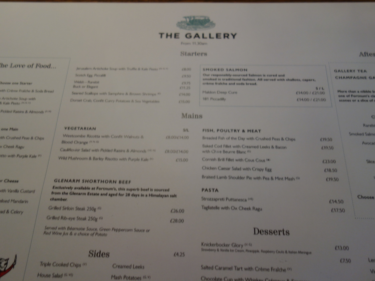 フォートナム アンド メイソン : ザ ギャラリー レストラン Fortnum & Mason: The Gallery Restaurant