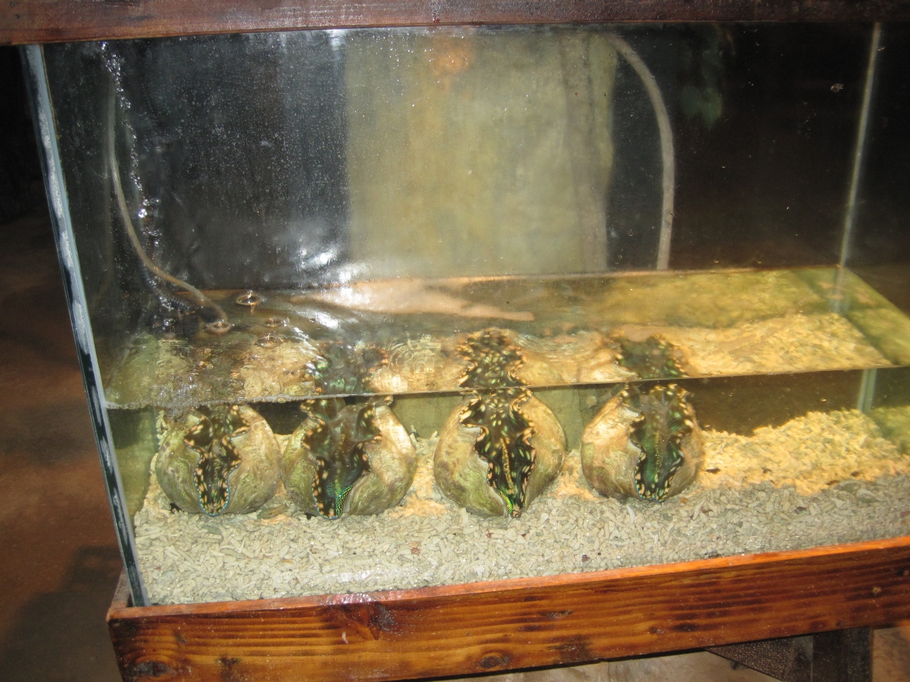 水槽があり、名物の大きなシャコガイがあり