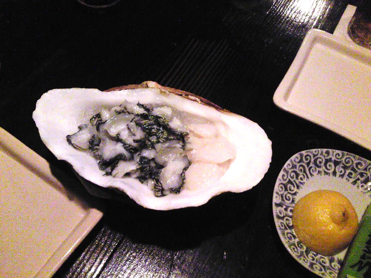 メインはシャコ貝刺身