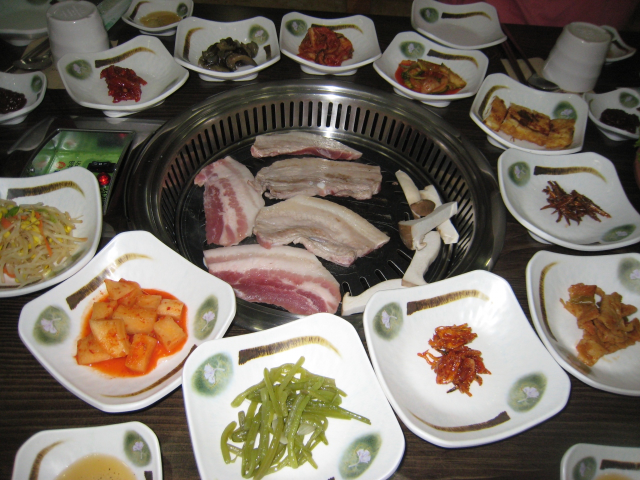岩盤浴→よもぎ蒸し→お風呂→アカスリ→顔パック→全身マッサージとフルコースをしたあと、最初からついてたチマチョボリを着ての写真撮影。いっぱいあるチマチョボリから選んで着せてくれました。韓国料理も食べました~。
