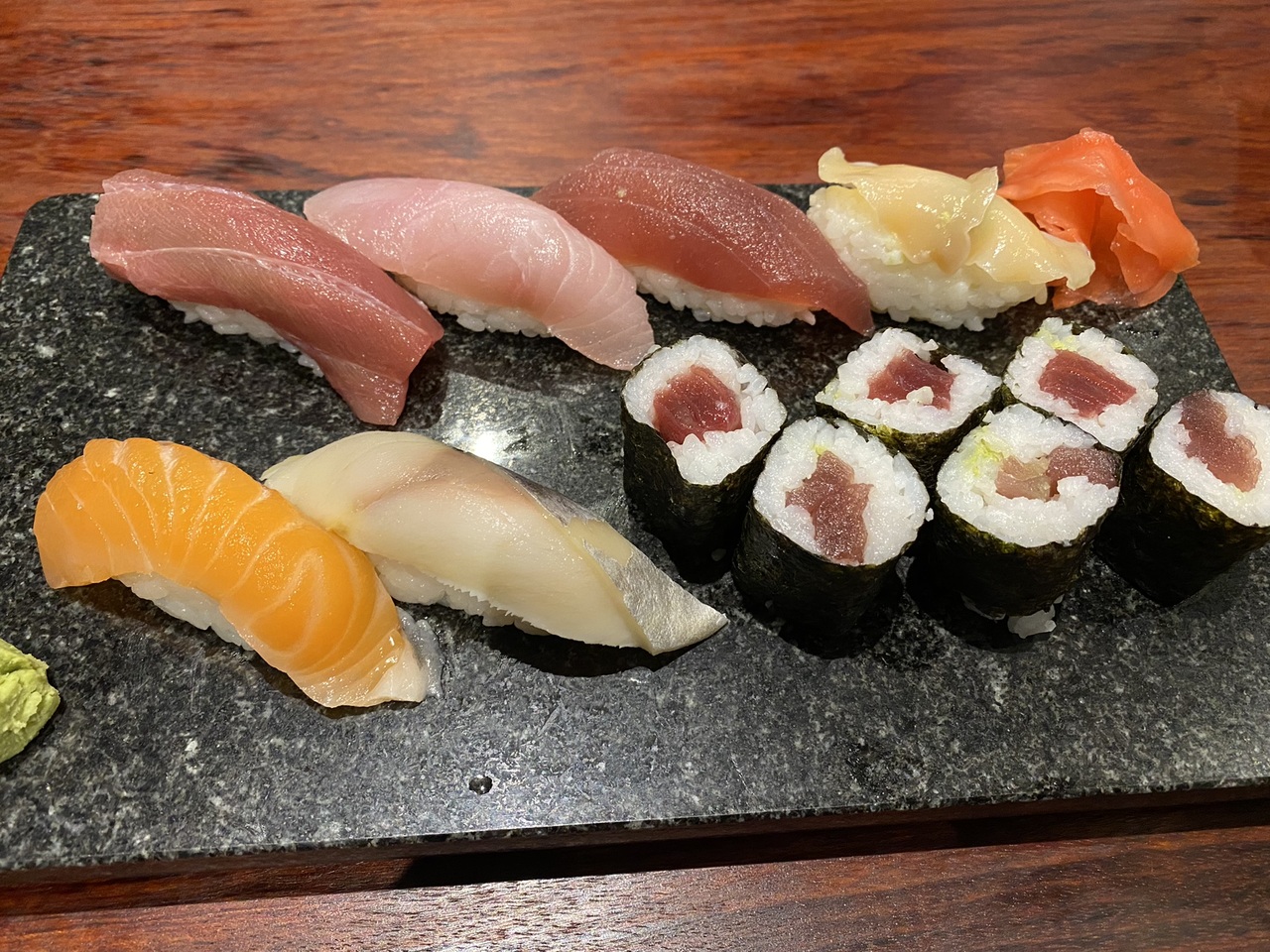 ランチ寿司です。左上の鮪が脂が乗ってて美味しかった。
