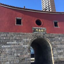 周囲に何もない場所にポツンと。門の壁に直に触ることもできた