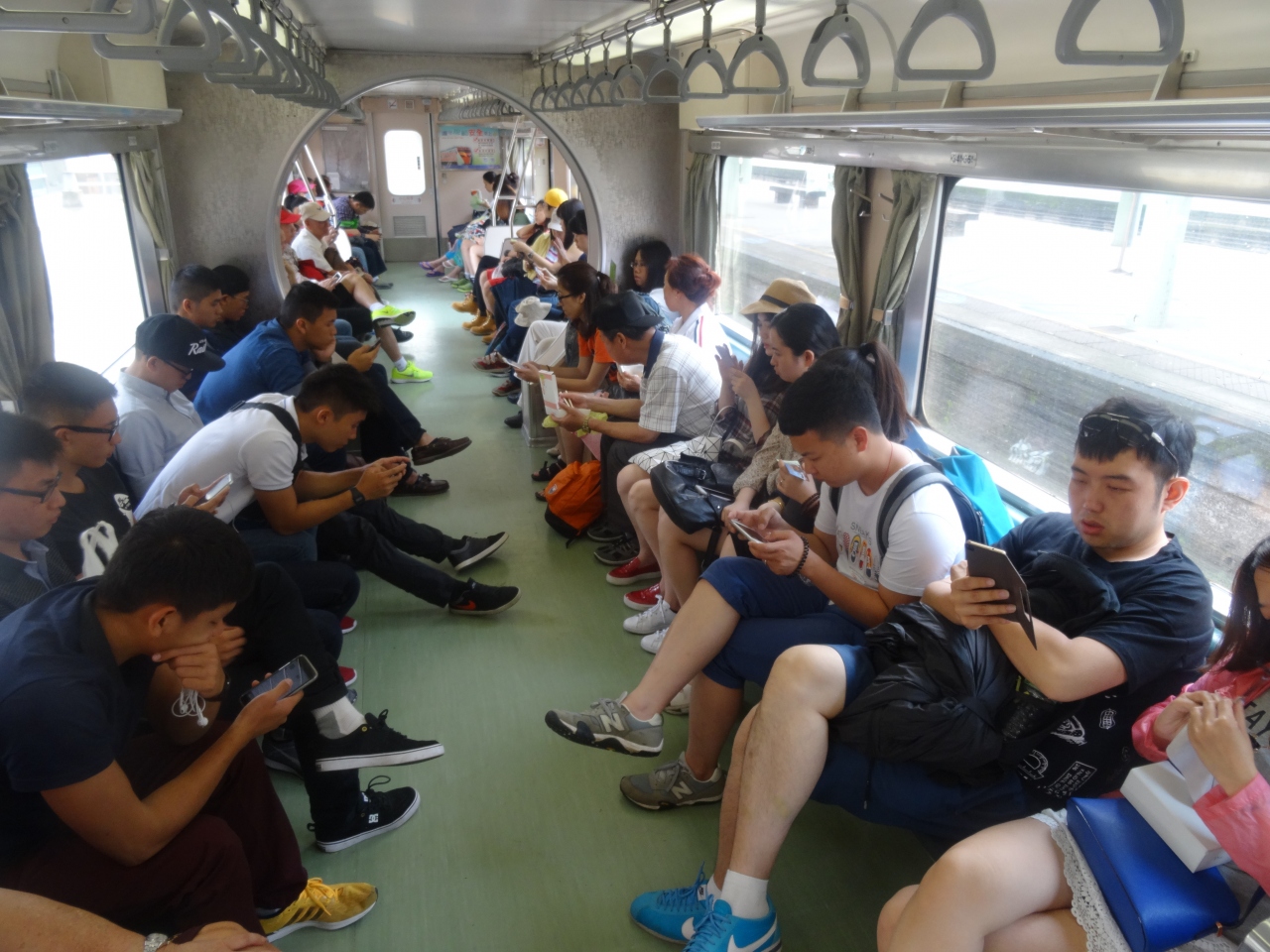 日本のローカル線とは違って、平日昼間でも大混雑しています。