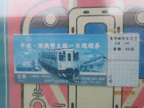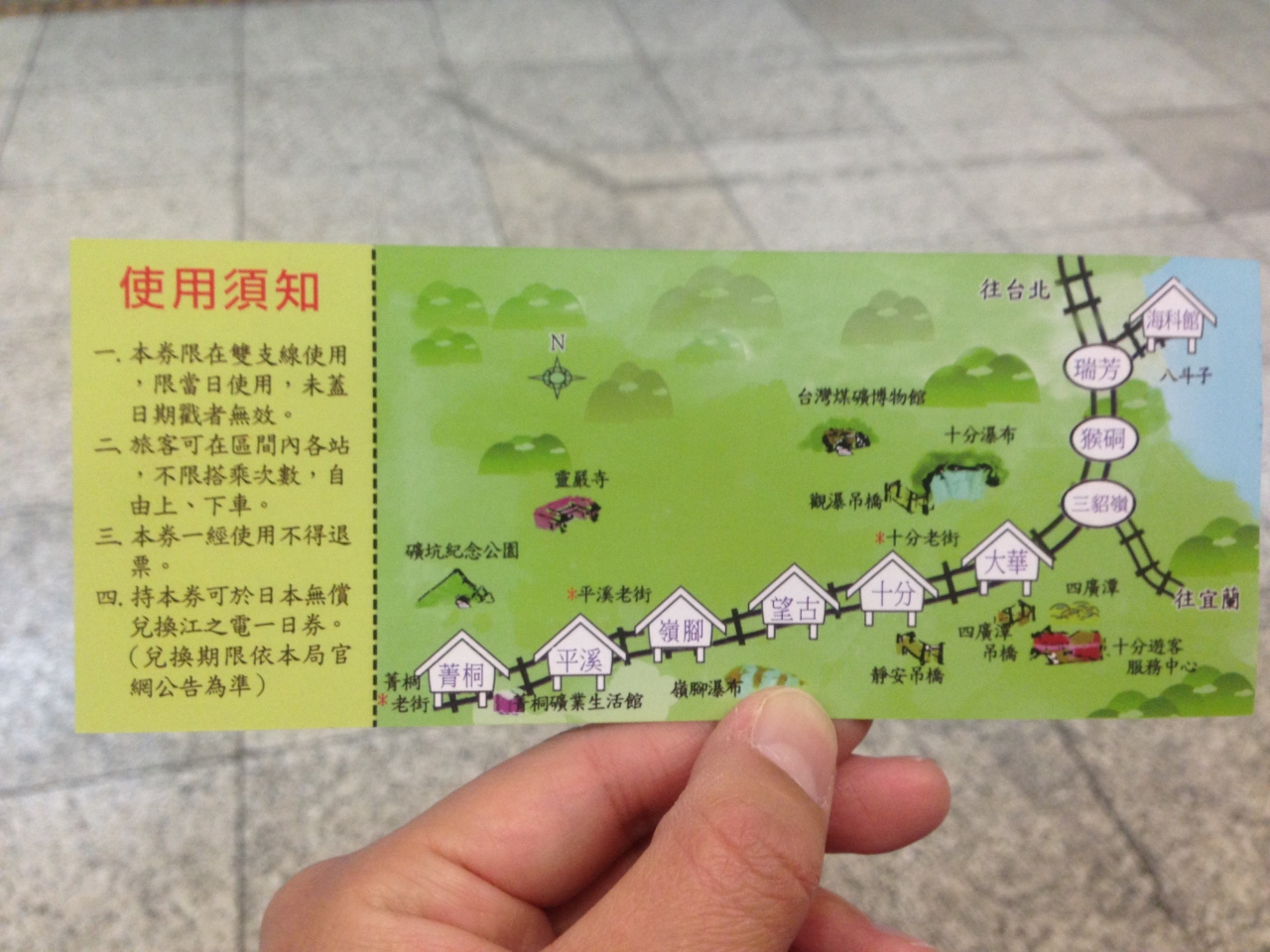 「平溪線一日週遊券」という乗り放題の切符があり、台北駅でも購入できる。日本に持ち帰ると、江ノ電の一日乗車券を貰えるとのこと。ただ皆、この切符を持っているということなのか、乗り降りの際も、車内でも切符をチェックされる機会はほとんどなく「タダのり」状態になってしまう。