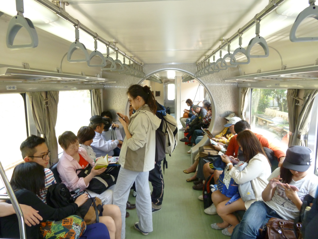 もともと石炭の運搬鉄道だった支線です。日本の産炭地のローカル線と同様に乗客減のため廃線の危機があったようですが、台湾のテレ... 続きを読むビ番組に取り上げられてから人気が沸騰し、ほぼ1時間に1本ということもあって午前中は満員列車になるようです。