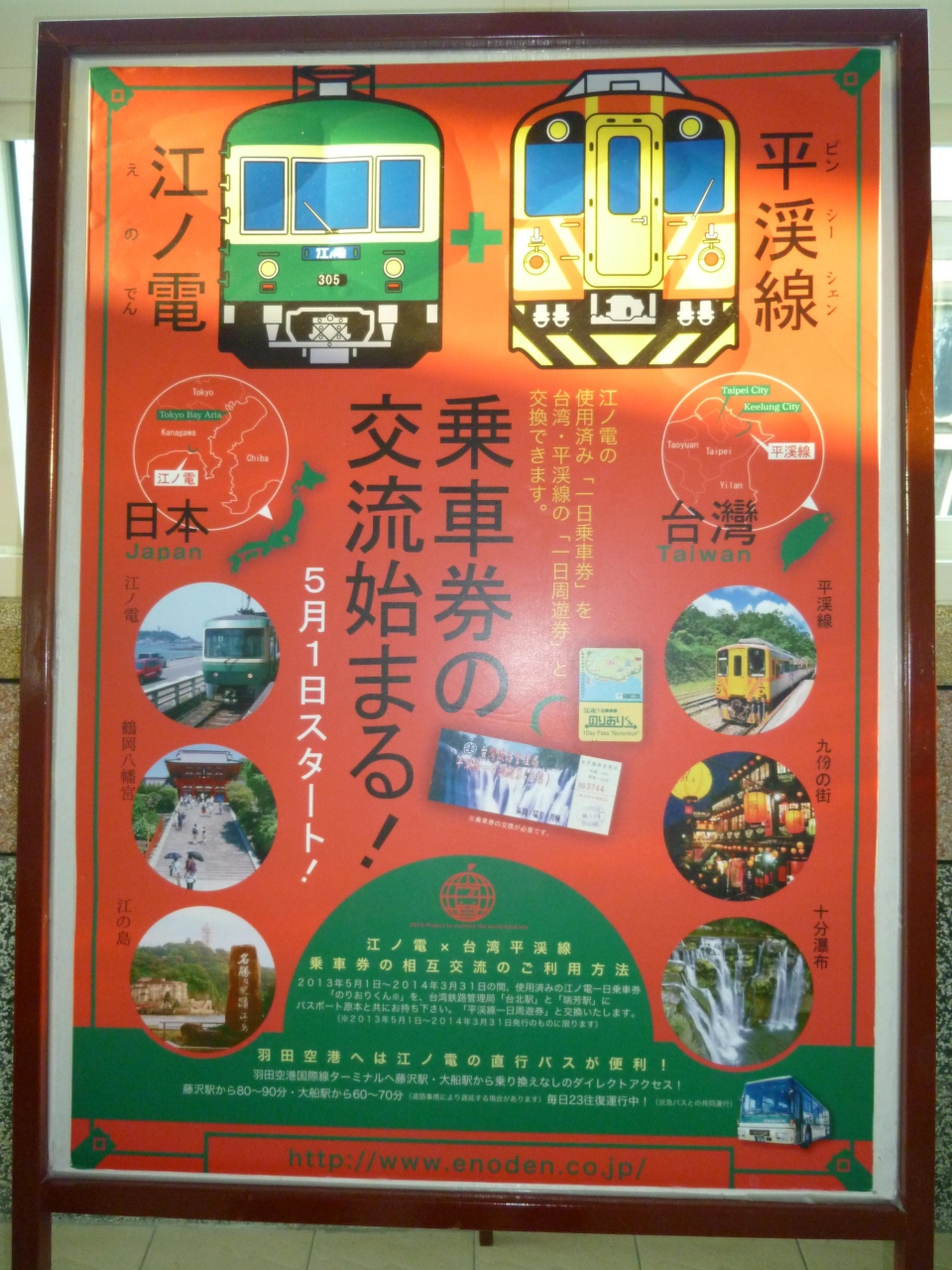 あと平溪線一日乗車券と江ノ電一日乗車券は交換出来るそうです! 閉じる投稿日:2015/09/29
