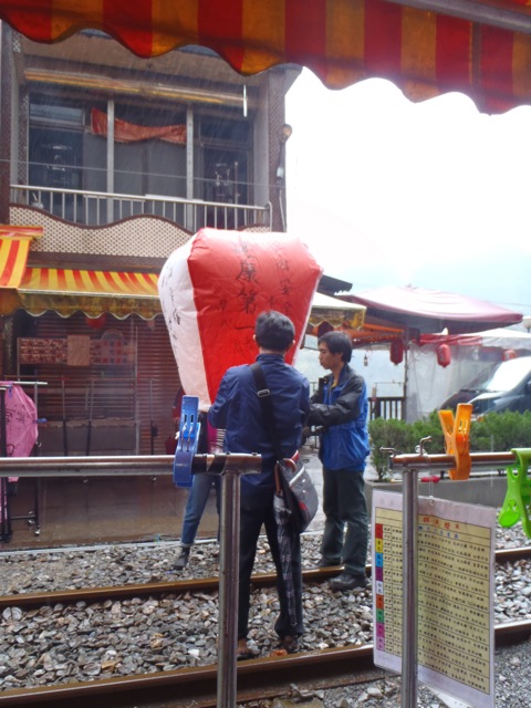 途中、十份駅でランタンあげと昼食、