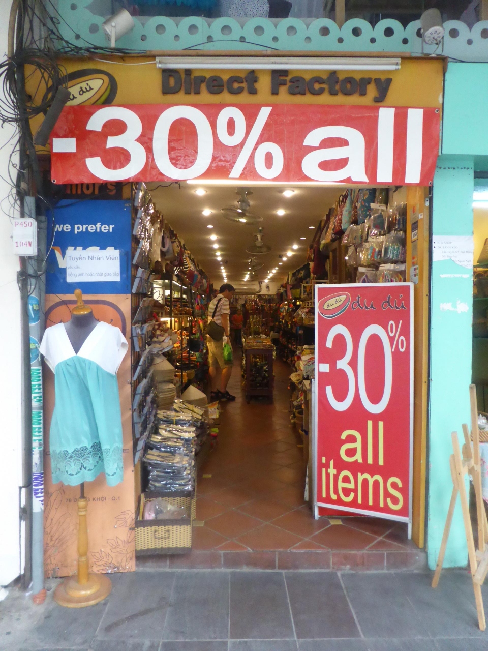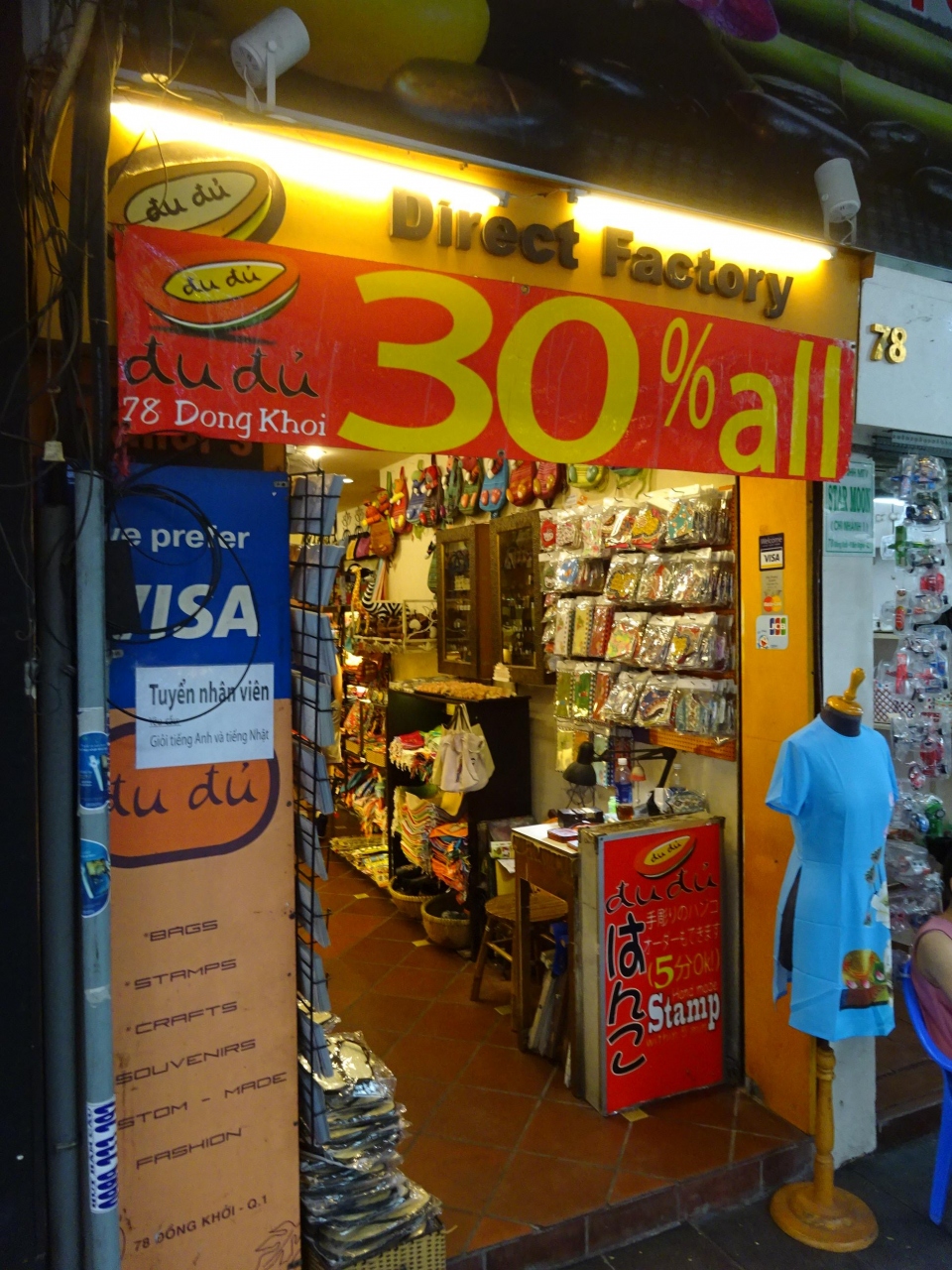 ドンコイ通りにあり、手ごろなお土産物が所せましと並べられています。