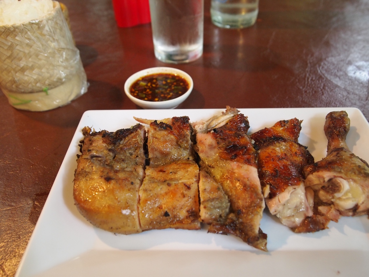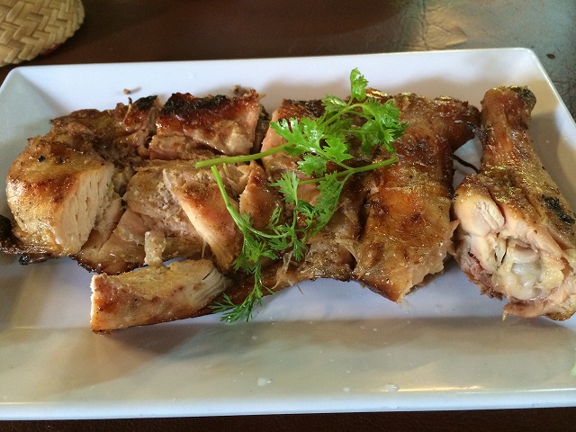こちらのガイヤーンは鶏肉を開いて焼いています。SPチキンは丸ごと焼いて中に