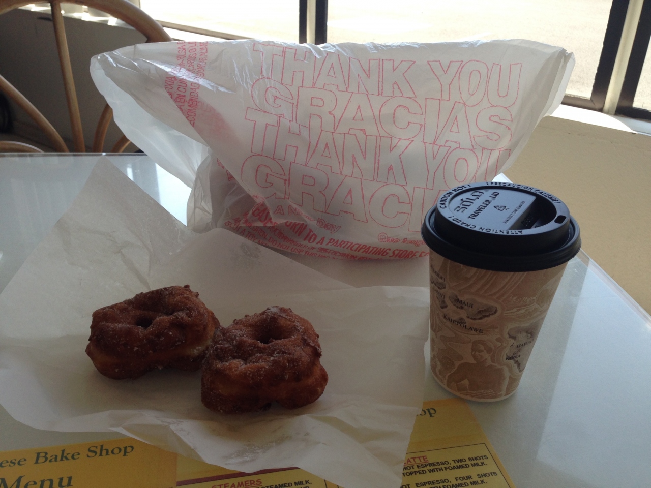 ショーケースにはパンしか並んでいませんが、お兄さんにマラサダ下さい(「マラサダ」の単語だけで、希望個数分指を立てて注文すれば大丈夫です)と言うと、すぐに揚げてくれます。
