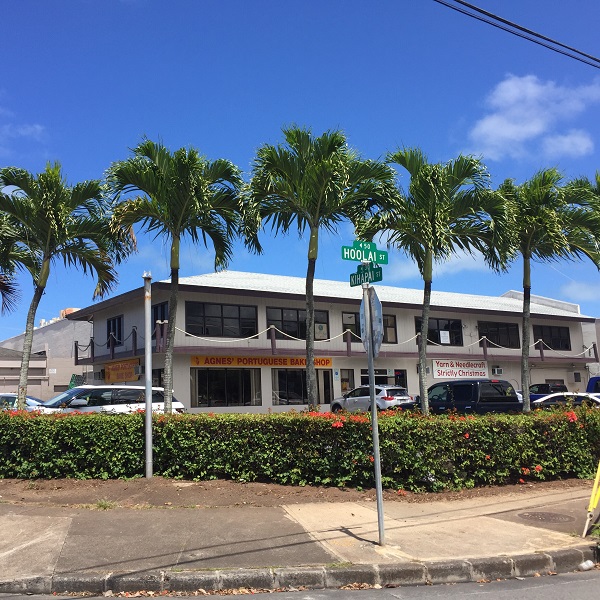 アラモアナから56か57もしくは57A のバスで45分程。ムームーヘブ... 続きを読むンの前のバス停で降りて少し先、或は次のホールフーズの前で降りて少し戻った所の ホオライストリートを進んで行くと右側にあります。