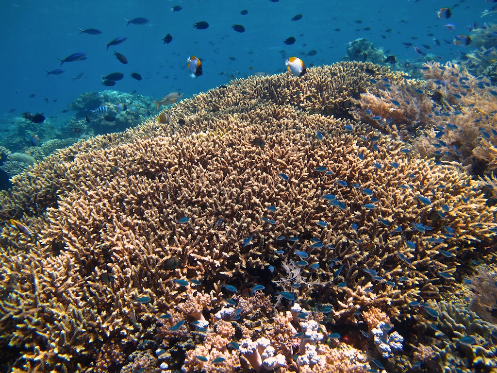部屋から出て目の前にある珊瑚礁の海でスノーケリングが可能なリゾート