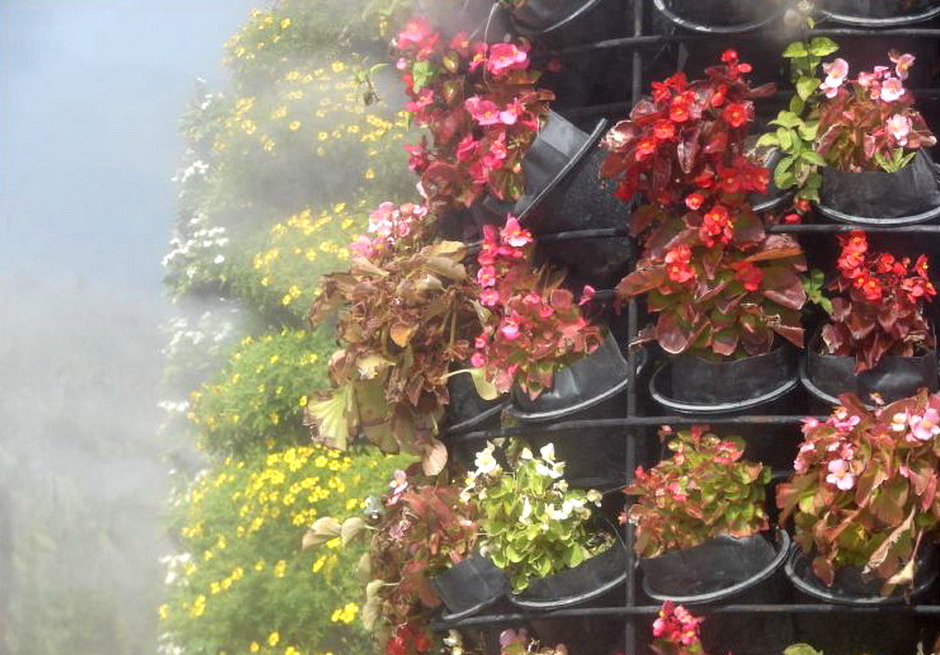 幾ら綺麗に咲いた花々も日焼けして直ぐ枯れてしまう・・・というわけで考えられた苦肉の策は花々たちへのシャワーなのだ・・