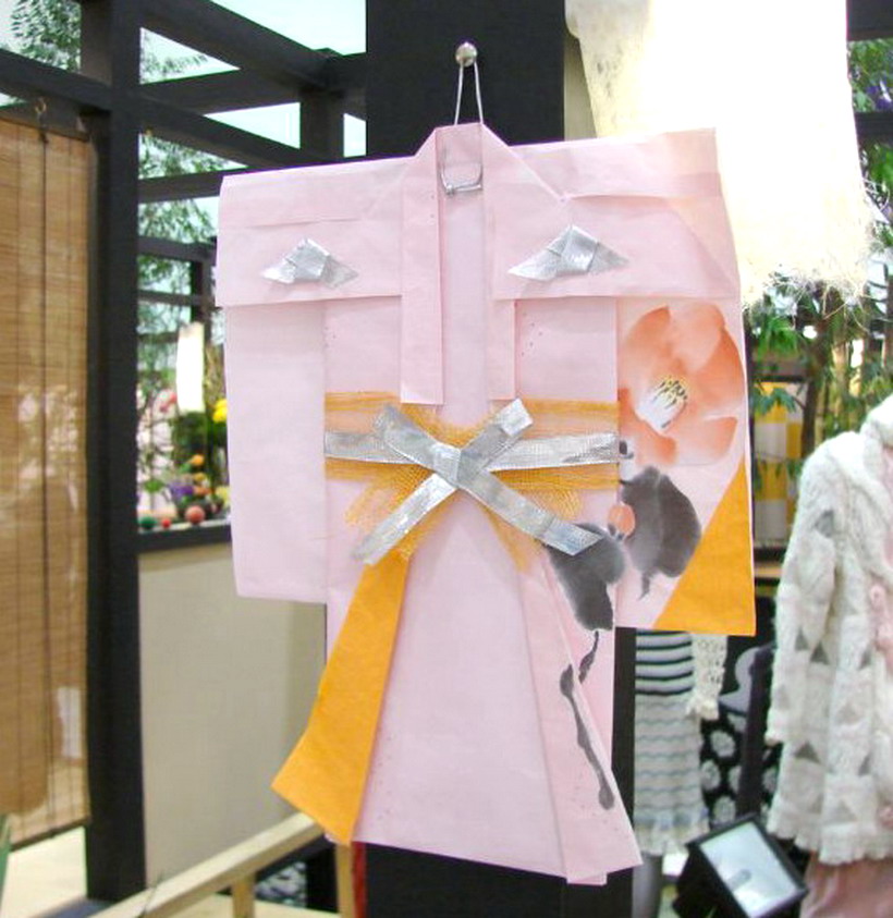 特に最初和紙で作られた着物かと見入るタイ・外国人の人の目と日本人の顎に手をつけて考えるポーズをしながら眺めている人の目が可笑しくて・・もし分けないくらい笑える・そう・・これは確かに和紙でできているが・・よく見ると和菓子を包装していた包装紙だつたりして・・なかなかどうして・・そのアイデアに乾杯・・そういう繊細な工夫は注目されていた。一人一人の個性とアイデアは競うのでなく公表できる場として大きく利用された日本週間だつたのではと感じられる。