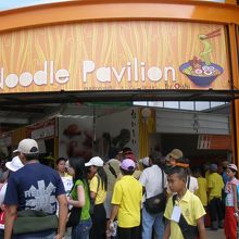 会場正面からすれば左上に位置しているおいしいグループのヌードルブースです・・ここにはまた凄い人が並んでいます・・この会場の... 続きを読む欠点はそう・・お腹がすいて食事が出来るブースが少なく・・軽食はたくさん用意されていますが・・食事は少ない上高いのが難点ですね・持込可能・ですから逆に食べたいものを持ち込んだ方がベターです。