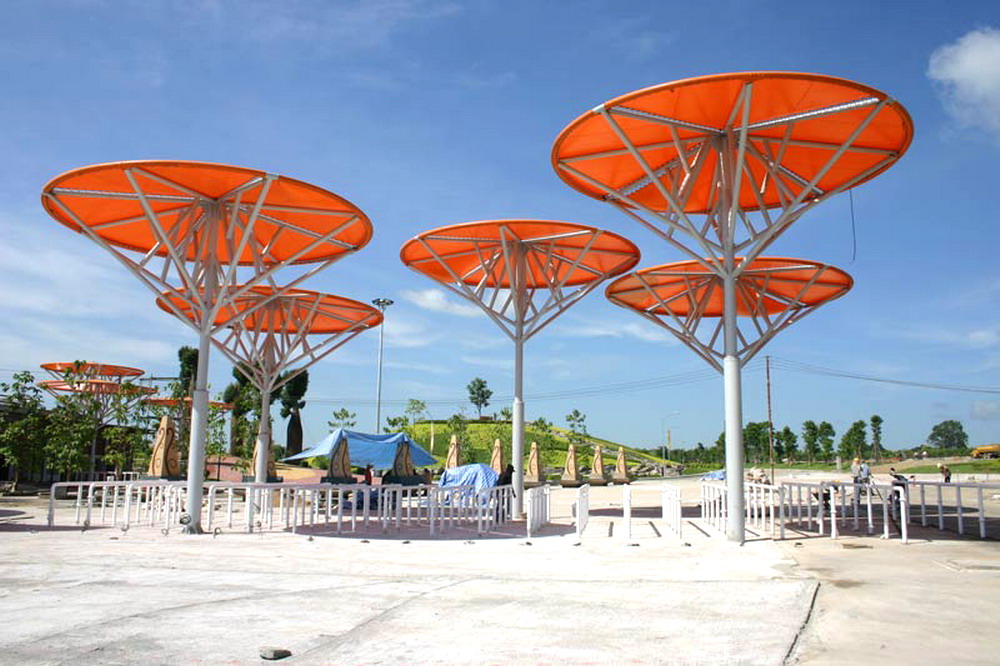 会場の入り口に立つ赤い傘はまるで日本の遊園地の入り口にも思えると・・・