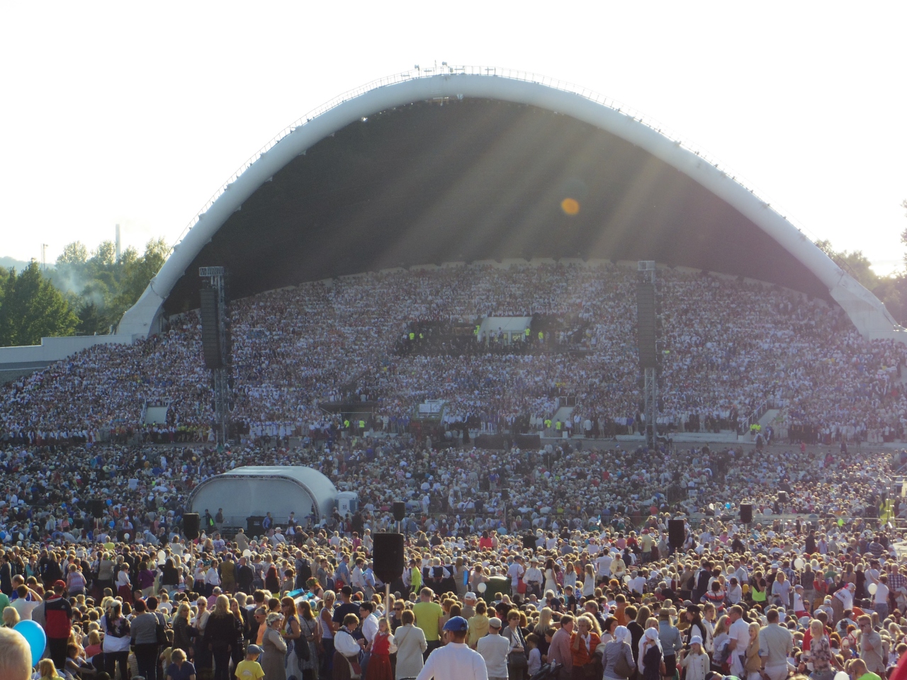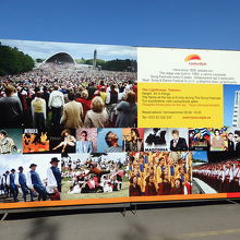 歌と踊りの祭典の行われる場所を歌の原と呼んでいる。なだらかなスロープをした会場は大変広い。スロープ底部にお椀を伏せたような形をした祭典の舞台がある。