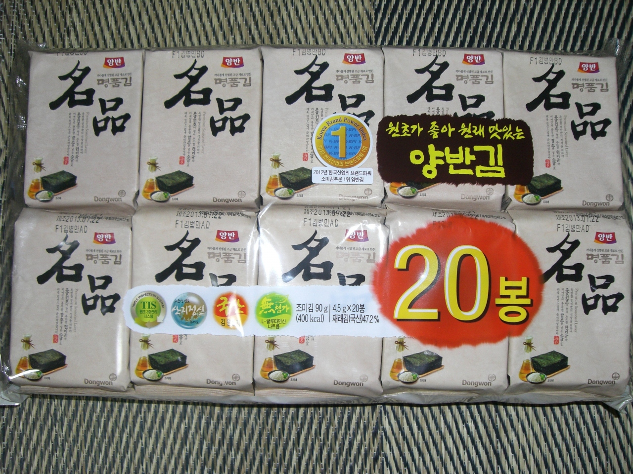 ここでヤンバン海苔のうち、比較的高級品に入る「名品」を購入したのですが、20個入りパックが5800ウォンと安かったです。