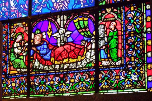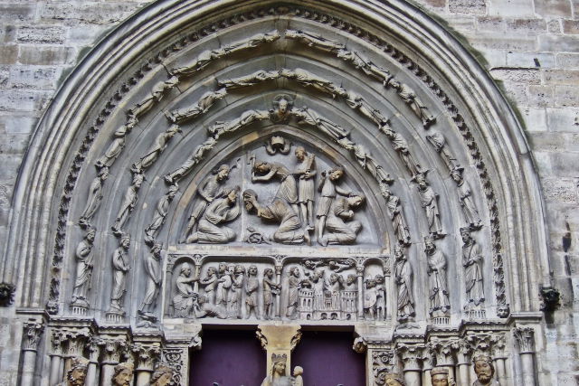 中世美術ファンとしては、シュジェール Suger de Saint-Denis がかかわるこの西正面ファサードの改修後が気になるところです(彫刻部分の補修はもちろん、真っ黒だったタンパンは汚れを落とされるようです。) 聖堂内の放射状祭室のシュジェールのステンドグラス(有料エリア)は問題なく鑑賞できました。