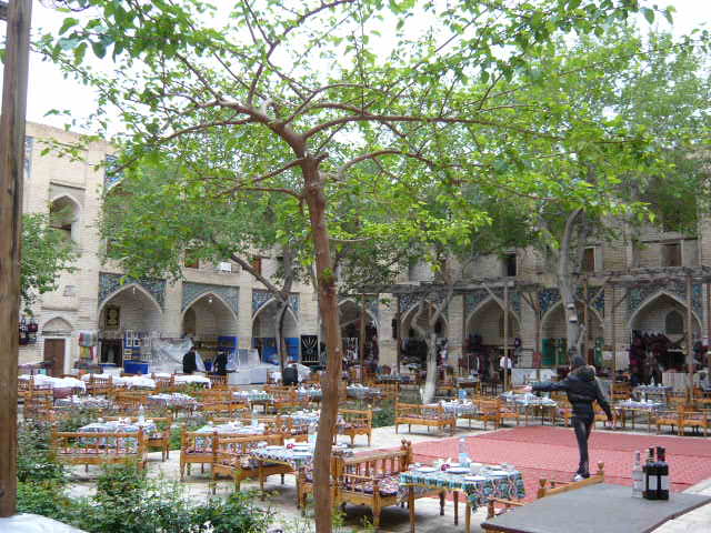 ラビハウズの東側に建つメドレセです。ラビハウズとメドレセの間は木陰が涼しい広場になっていて、フッジャ・ナスレッディン像が建... 続きを読むっています。