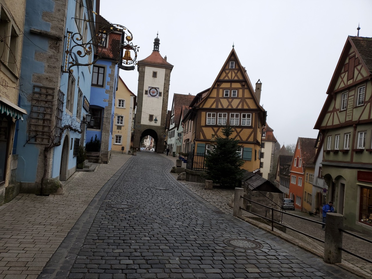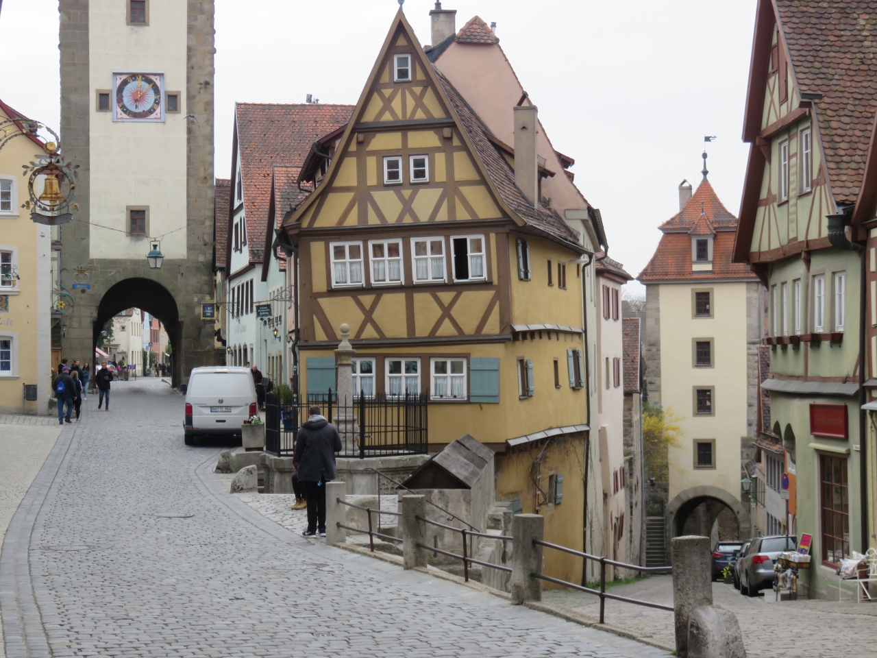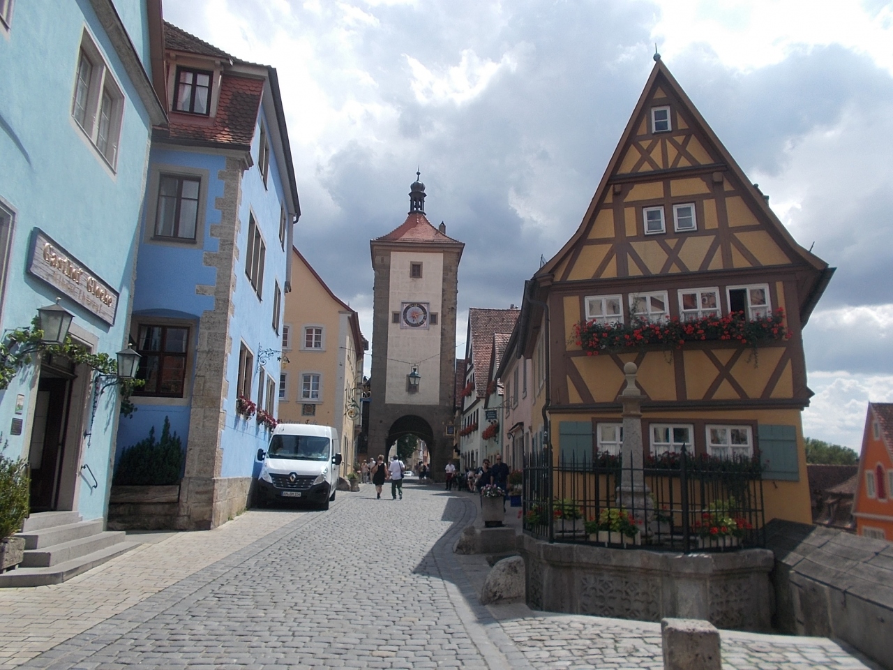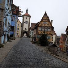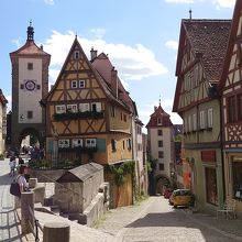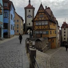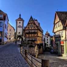 街の中心部にあるマルクト広場から南に300mほど進むと、ローテンブルグの観光写真で良く目にするプレーンラインに至ります。 ... 続きを読む 訪問時は生憎雨模様だったため、観光客は殆どいませんでした。プレーンライン景観の特徴は、石畳道路の両側にある伝統様式で建てられた木組みの家々と中世建造のジーハ塔の美しい組み合わせにあるように思います。家々の窓に飾られている草花やさりげなく置かれている木樽なども景観を引き立てています。プレーンラインは、中世ドイツの雰囲気に浸れる美しいスポットです。 閉じる