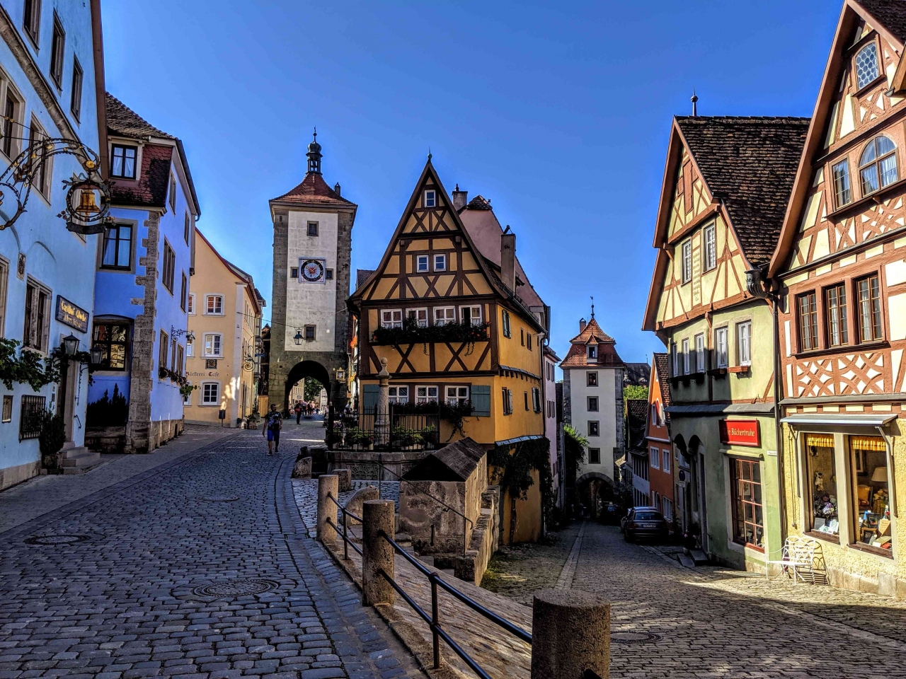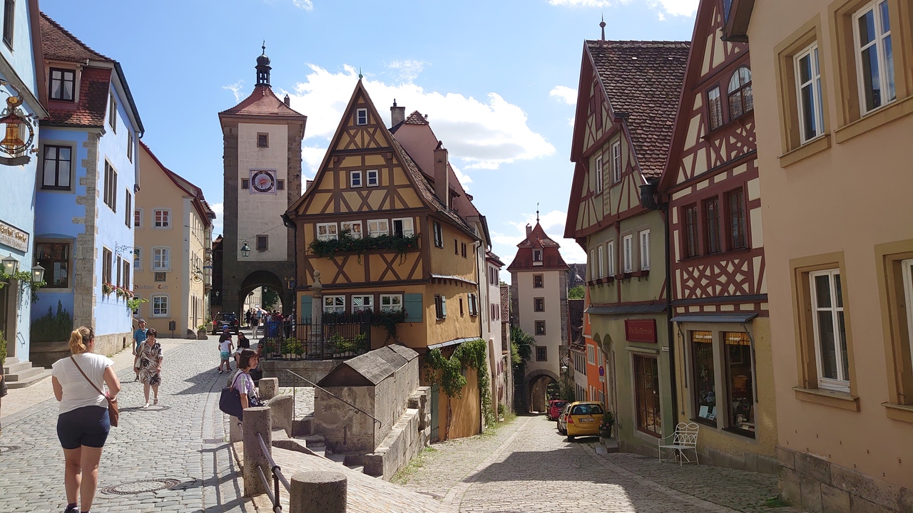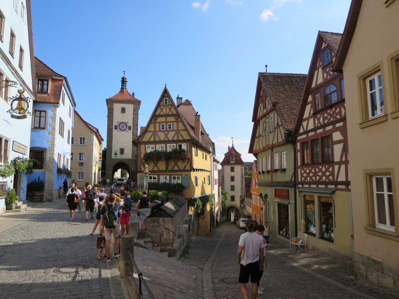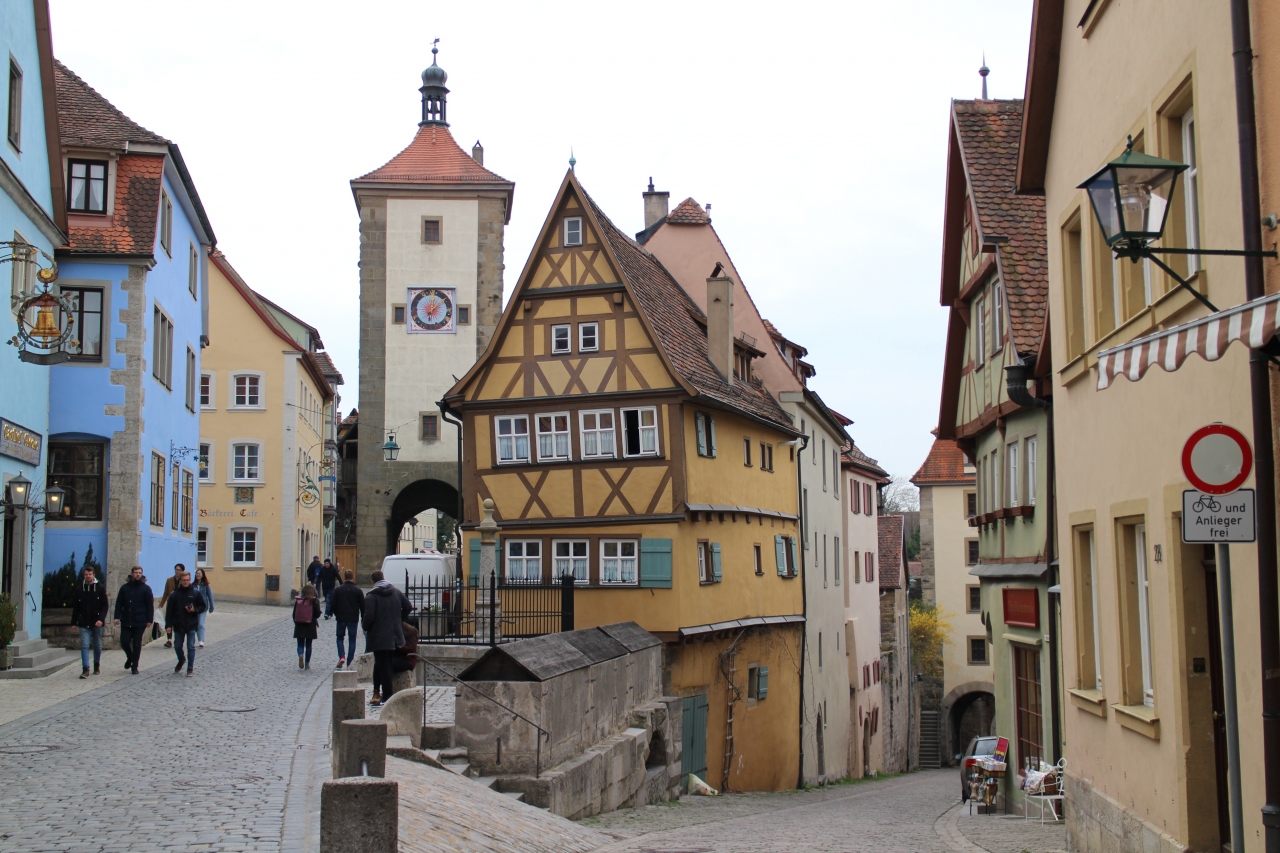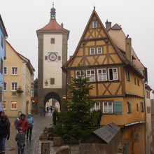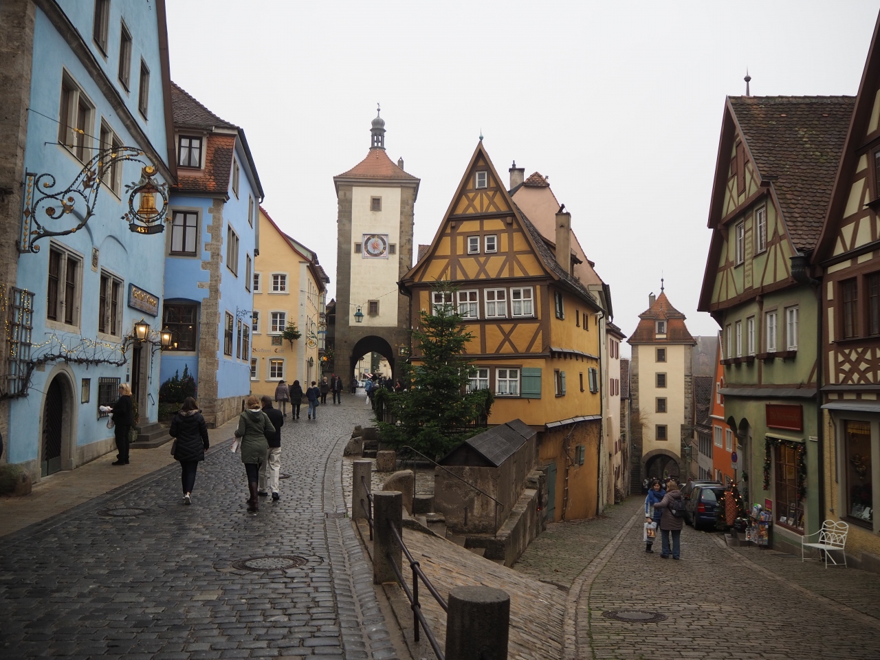 街の中心部にあるマルクト広場から南に300mほど進むと、ローテンブルグの観光写真で良く目にするプレーンラインに至ります。 ... 続きを読む 訪問時は生憎雨模様だったため、観光客は殆どいませんでした。プレーンライン景観の特徴は、石畳道路の両側にある伝統様式で建てられた木組みの家々と中世建造のジーハ塔の美しい組み合わせにあるように思います。家々の窓に飾られている草花やさりげなく置かれている木樽なども景観を引き立てています。プレーンラインは、中世ドイツの雰囲気に浸れる美しいスポットです。 閉じる