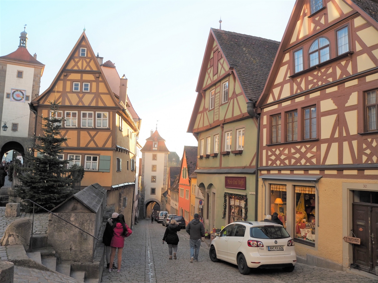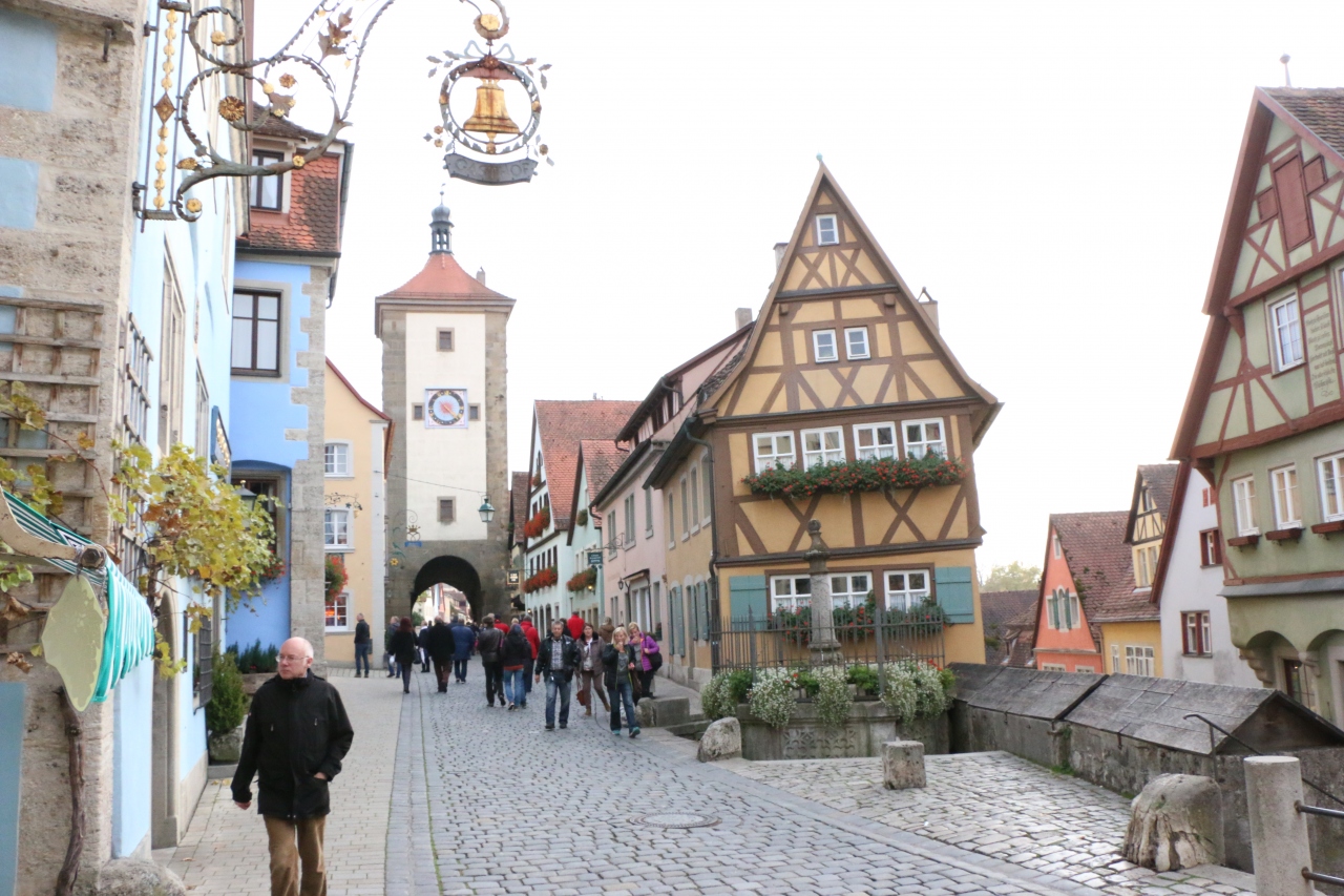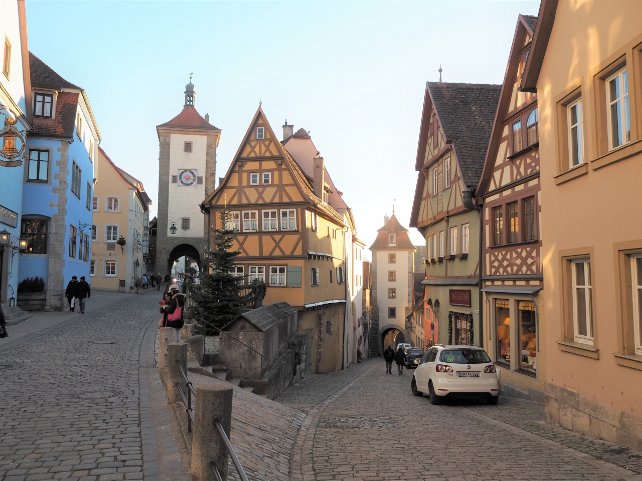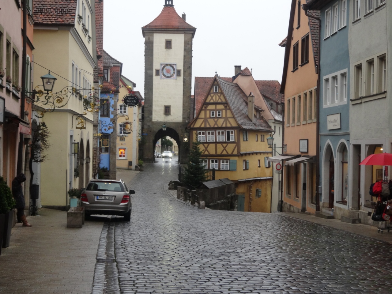 このフランケン地方に残る“中世の宝石”と称されるローテンブルグは人口12千人と小さな町である。旧市街の周辺をぐるりと高い城壁が囲み、3つの門、北と南に2つの稜堡を持った町の姿は西の谷となるタウバー川から80m上の町を見上げると、それは見事な城塞都市である。