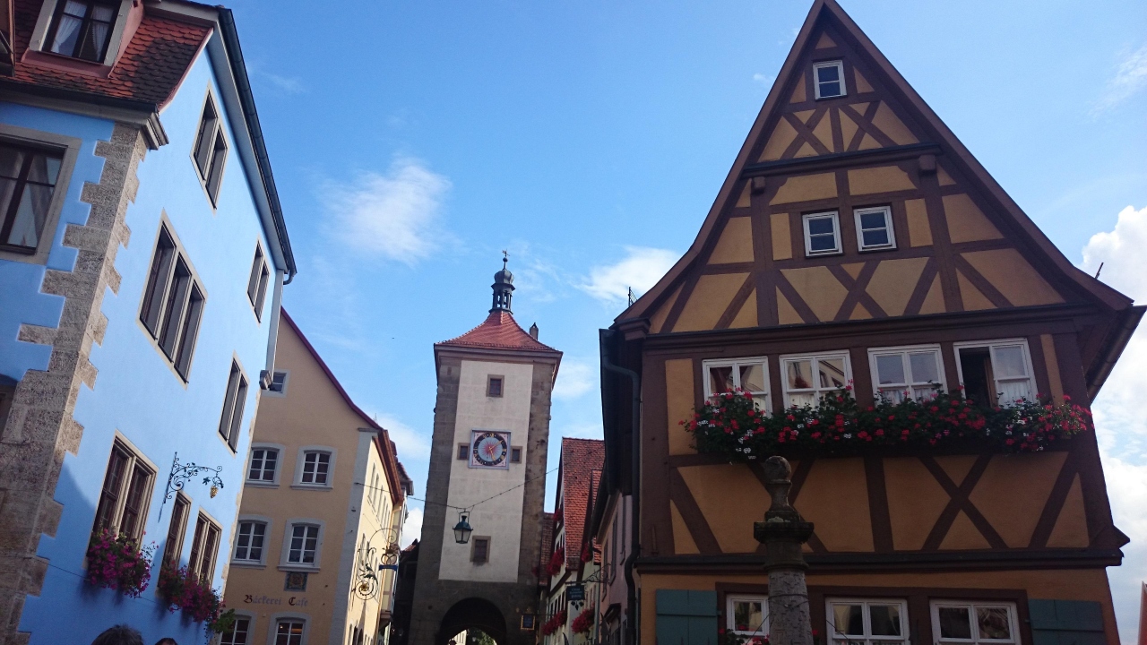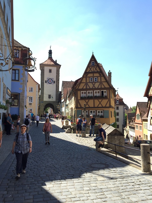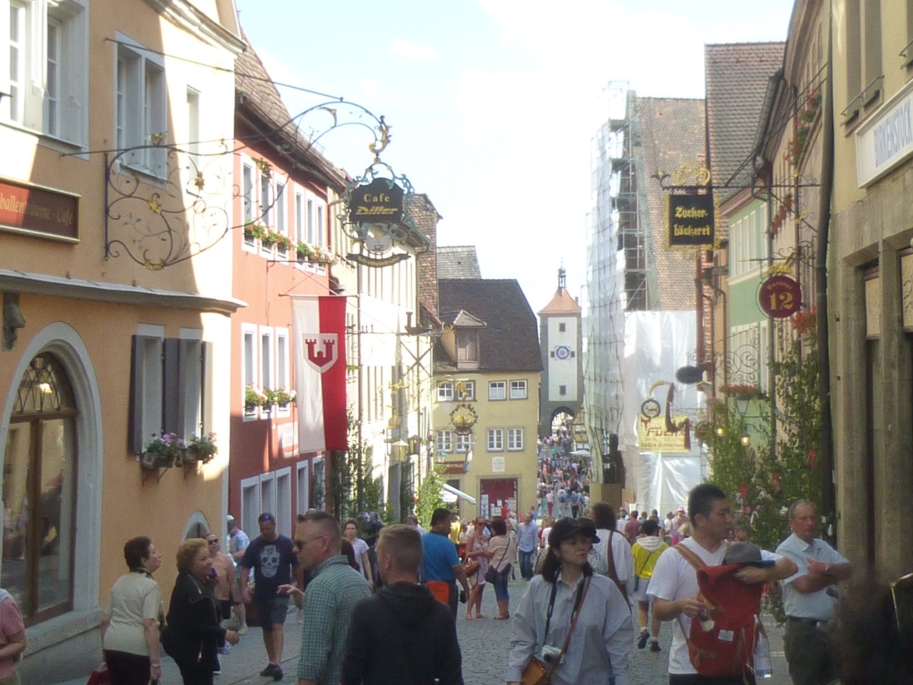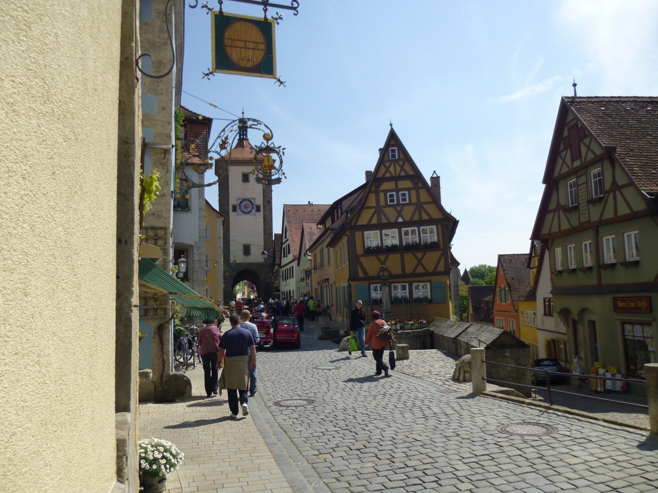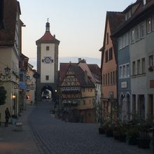 このフランケン地方に残る“中世の宝石”と称されるローテンブルグは人口12千人と小さな町である。旧市街の周辺をぐるりと高い城壁が囲み、3つの門、北と南に2つの稜堡を持った町の姿は西の谷となるタウバー川から80m上の町を見上げると、それは見事な城塞都市である。