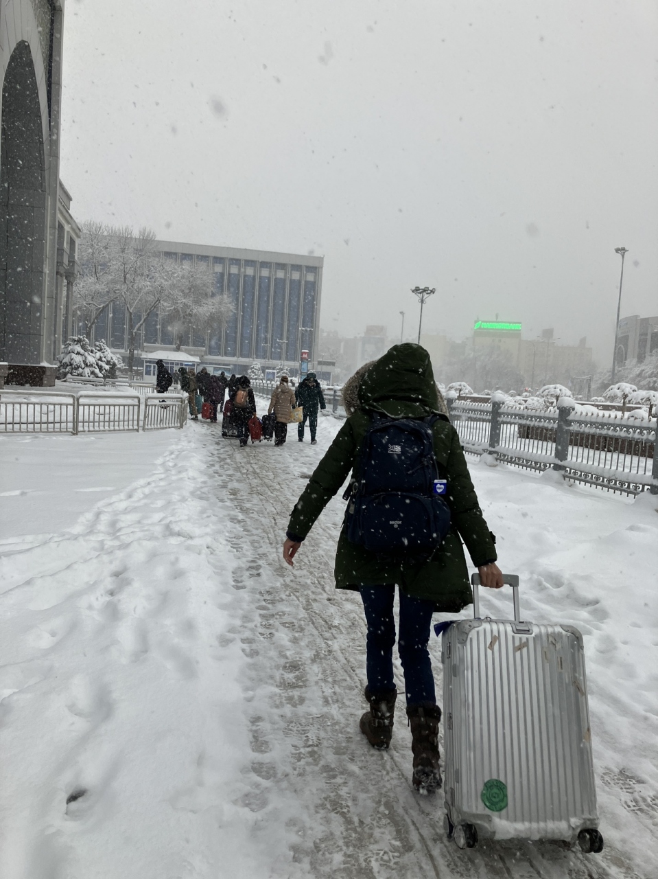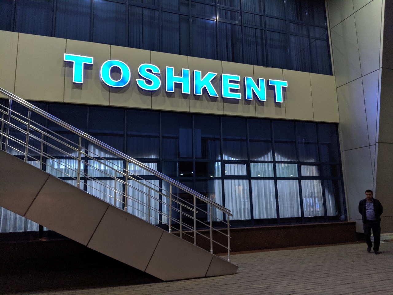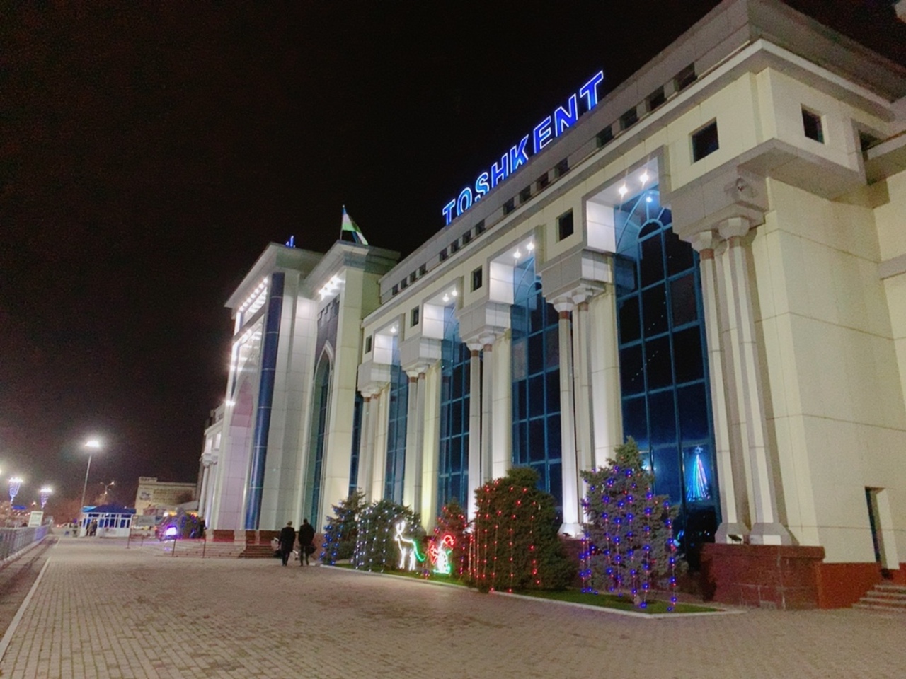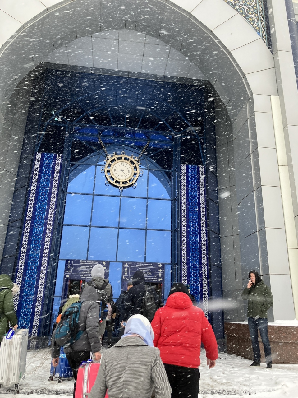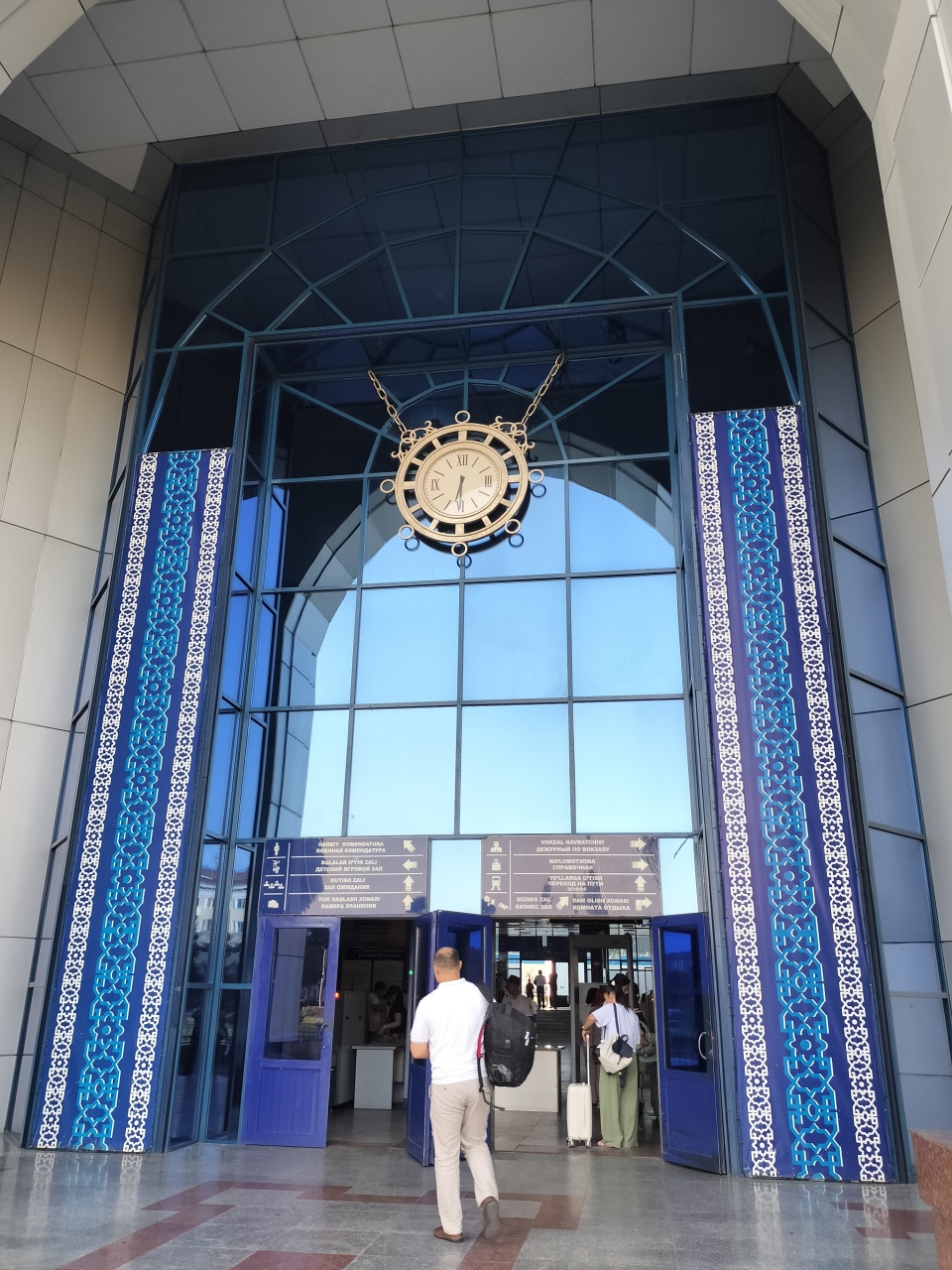 階段を上るのも大変。駅舎はイスラムの紋様。