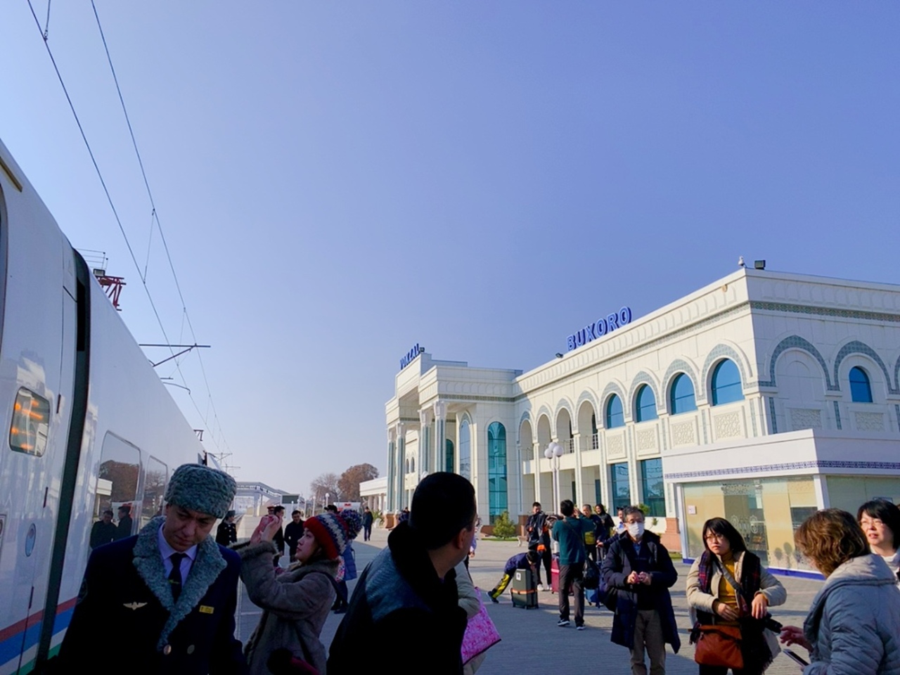 ブハラの中心地へは車で30分程かかり、かなり距離があります。今回は行きはYandexGoで、帰りは路線バスを利用しました... 続きを読む。 YandexGoは目の前のタクシー乗り場でピックアップ。車両にはTAXIのサインがあって、タクシードライバーが副業でやっていました。料金は35000スムと格安。タクシーの3分の一ほどで、ガソリン代も出ないとドライバーが愚痴っていました。今回は宿泊はしなかったので旧市街の任意の場所(中心にあるホテル)を降車場所に指定しましたが、各所で再開発の工事をやっており大渋滞。手間で降りて歩いて向かいました。 帰りはボロハウズモスクそばのバス停からローカルバスに乗りました。今回は378番を利用しましたが、他にもいくつか付近を通る路線があるようです。詳しくはYandexGoアプリで検索が可能です。料金は3000スム。現金のみで、降車時にドライバー(実際はすぐそばに座っている客が回収係を買ってでている状況)に渡します。お釣りももらえます。乗車時間は1時間程度でしたが、中心地はいたるところで工事をしているので、時間には余裕を持ったほうが良さそうです。バスは日本で言う中型バス程度。かなり混雑しており、念のためスリには気をつけたいところ。乗客はほぼローカルで、大きな荷物などを持ち込む感じではありませんでした。あと、感心したことがあり、老人や妊婦などに座席を譲る習慣が徹底されていたことが感動でした。日本だと見て見ぬふりということも多いですが、こちらでは他の乗客が声を掛け合って席を譲っていたのが印象的でした。 ちなみにエアコンはありません。窓は開いていますが、灼熱地獄でした。 駅舎は小ぢんまりしておりますが、無料のトイレや売店にカフェが揃っており充実の設備でした。あと、今回は宿泊せずの観光でしたが、駅の職員室で荷物を預けることができたので、手ぶらで観光ができて助かりました。料金は10000スムで現金決済。ただ、職員室の控室に荷物棚があって、各自が勝手に置き、勝手に持ち出すシステムなので、その点は割り切りが必要です。 閉じる