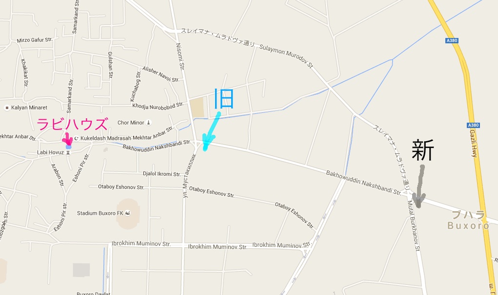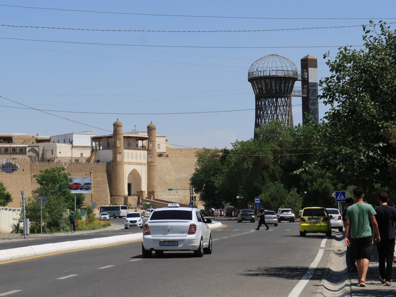 ブハラ旧市街、バハウディン通りの黄色いマルシュ