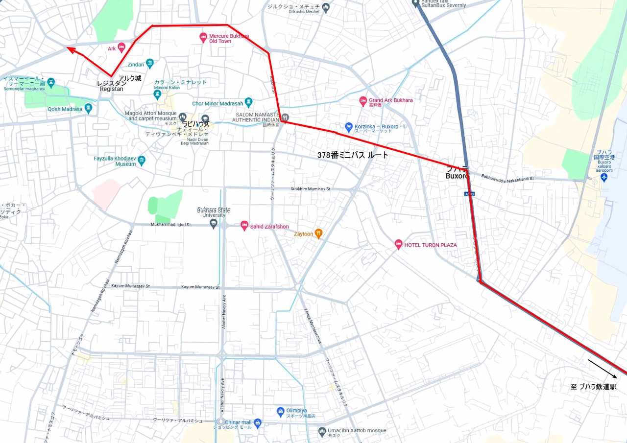 378番のミニバスのルート図(2024年6月時点)
