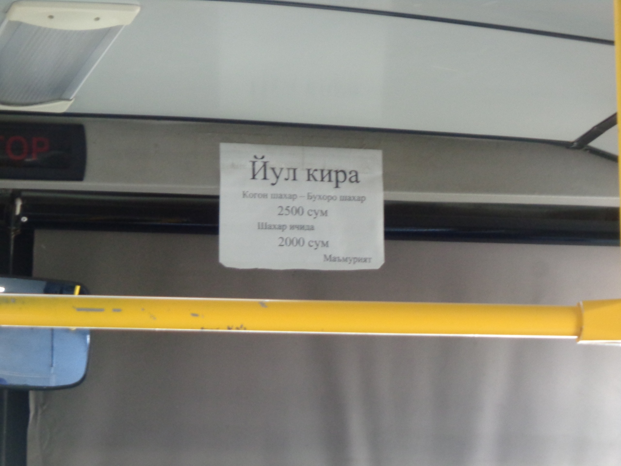 ギジュドゥヴァン⇔ブハラ間のバス。ミニバスだが料金は近郊線分