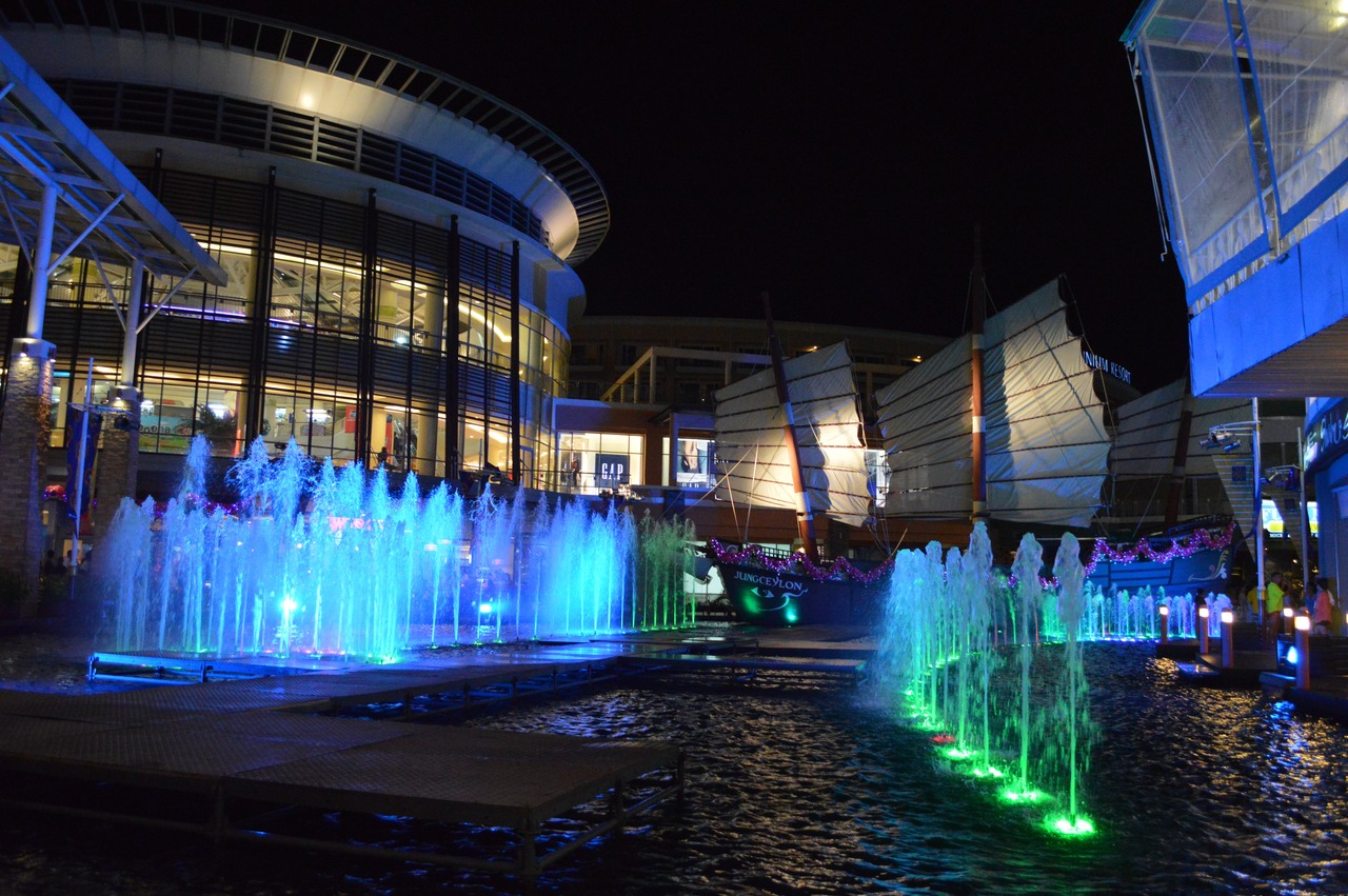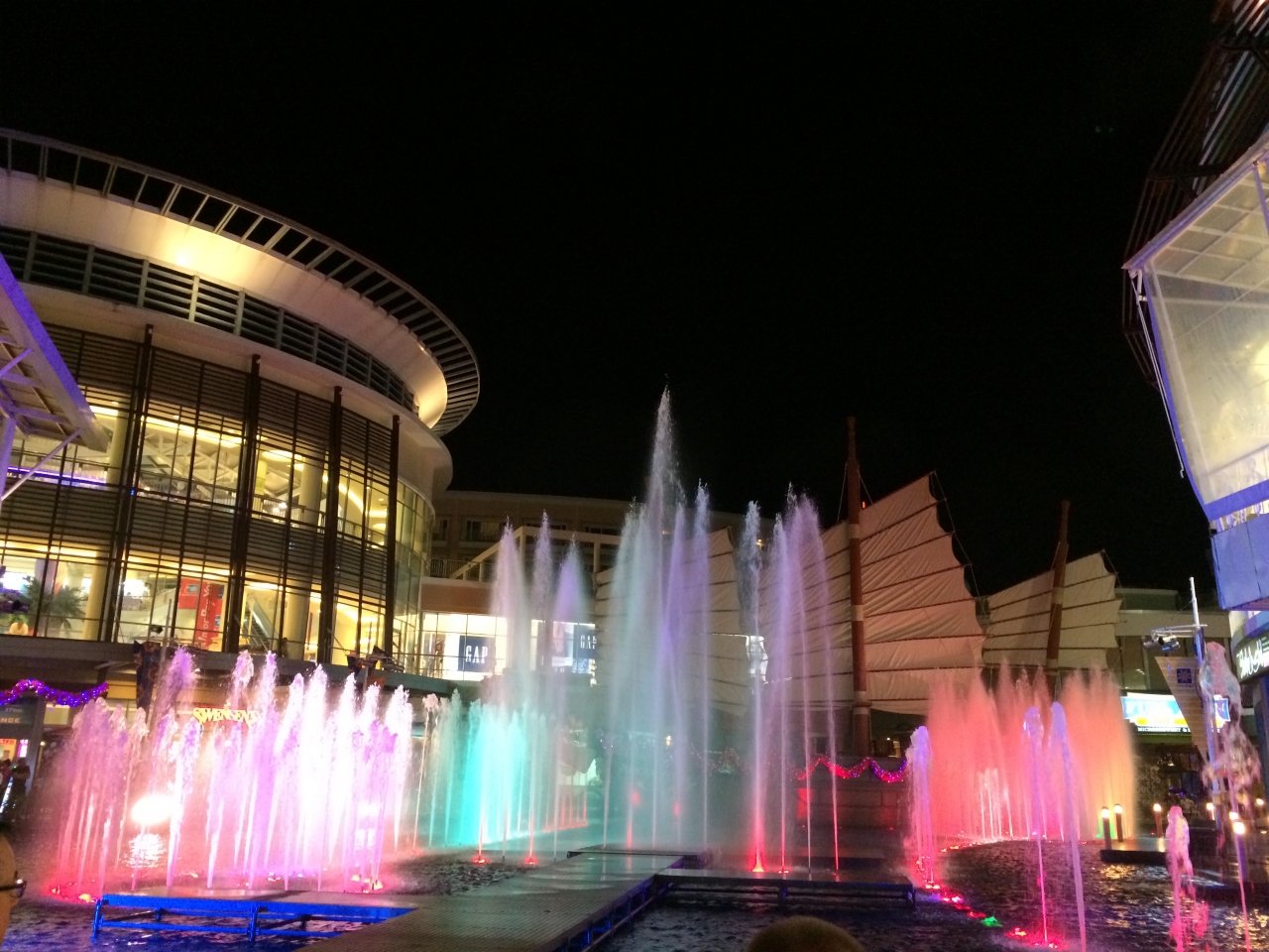 夜遅く行き閉店の22時までいました。夜は入口や中の広場がライトアップされていてキレイです。