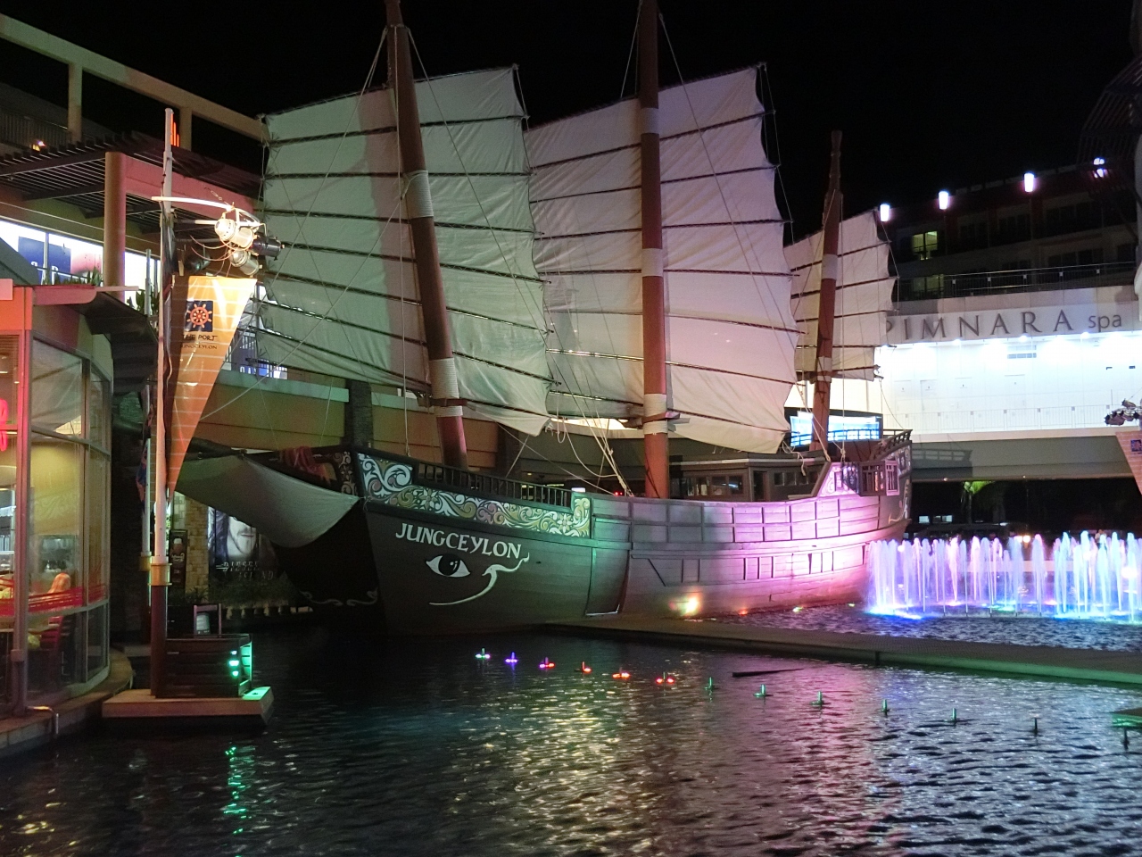 ジャングセイロンには大きな催事会場が3つあり、常時セールをしているのが大きな魅力。ショッピングセンターの中央にはジャング船... 続きを読むと呼ばれる船の模型が飾られ、そこでも催事が行われたり、カフェなどもあります。気軽にできるフェイシャル専門店はこの広場とスーパーマーケットそばに2店、マニキュア&ペディキュアの店も、カウンターだけで営業している店も数軒あります。