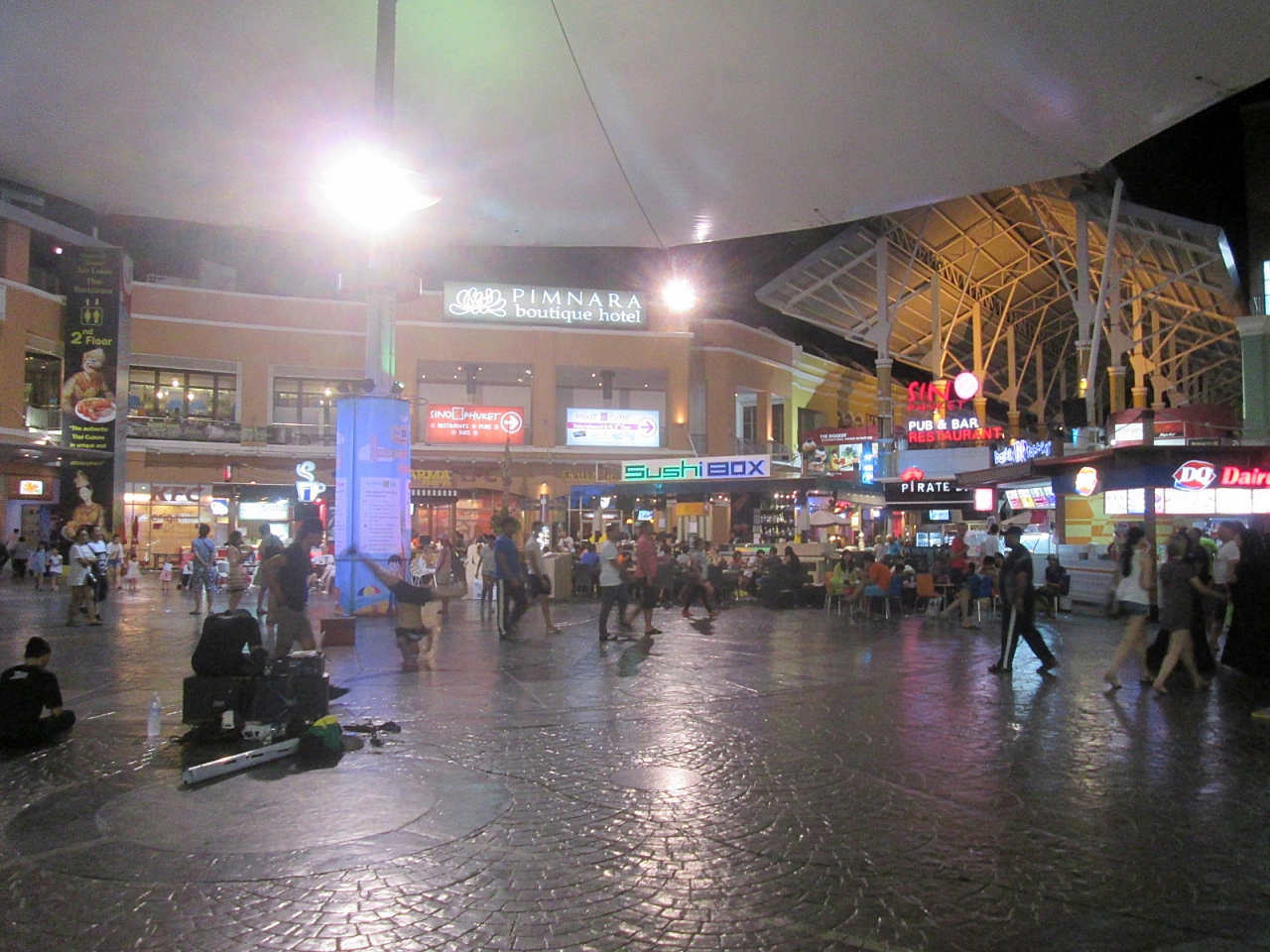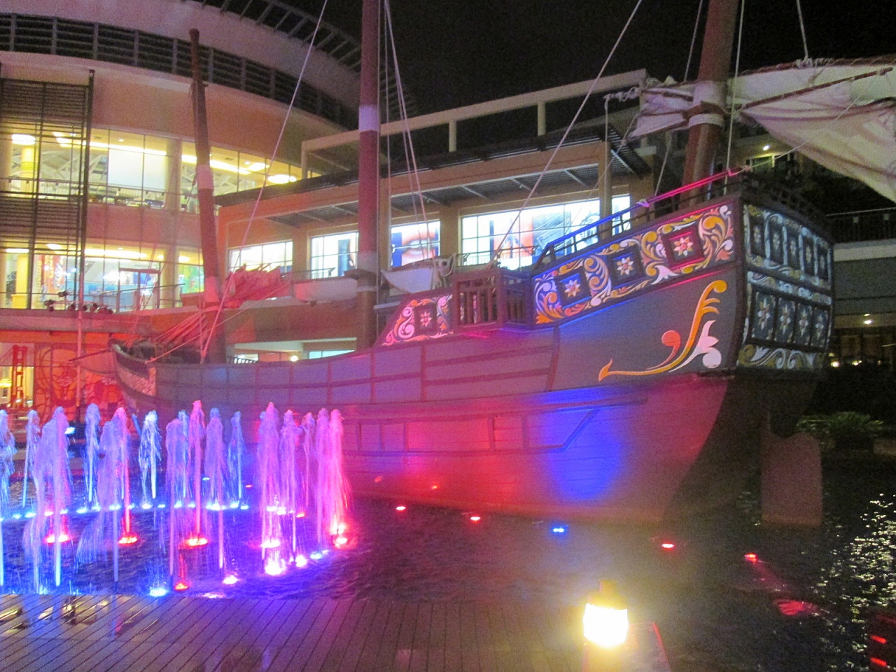 プーケット島最大の外国人用歓楽街であるバングラ通り程近くにある「ジャンクセイロン・ショッピングセンター」、その中心はジャン... 続きを読むク船が浮かべられた池のある中央広場で、その周りをデパート・ショッピングゾーン・ダイニングゾーンが囲む形をしています。もちろん昼間も観光客のショッピング・ダイニングスポットではありますが、その神髄はやはり夕刻以降にあると思います。日が暮れると中央広場ではダンスや大道芸が始まったり、ジャンク船が浮かべられた池では毎日19時・21時に噴水ショーが行われるなど、リゾート地らしい華やかさのあるショッピングセンターです。欧米人観光客が多く、かつてポルトガル支配下にあったという歴史を持つプーケットだからでしょうか、ダイニングゾーンもポルトガル風・ヨーロッパ風に設えてあり、とりわけ夕刻以降は、その照明効果もあって、まるで本物のヨーロッパの街並みであるかのような雰囲気です。ショッピング街には高級品も多いですが、センター内にはセントラル系列の庶民派デパートであるロビンソンデパートも入居しており、館内にはスーパーマーケットもありますから、節約旅行派の買い出しにも使えると思います。ウィンドウショッピングだけでも楽しめる、エンターテイメント性が強く、お洒落なショッピング・ダイニングスポットですから、暇つぶしにも良いと思います。 閉じる