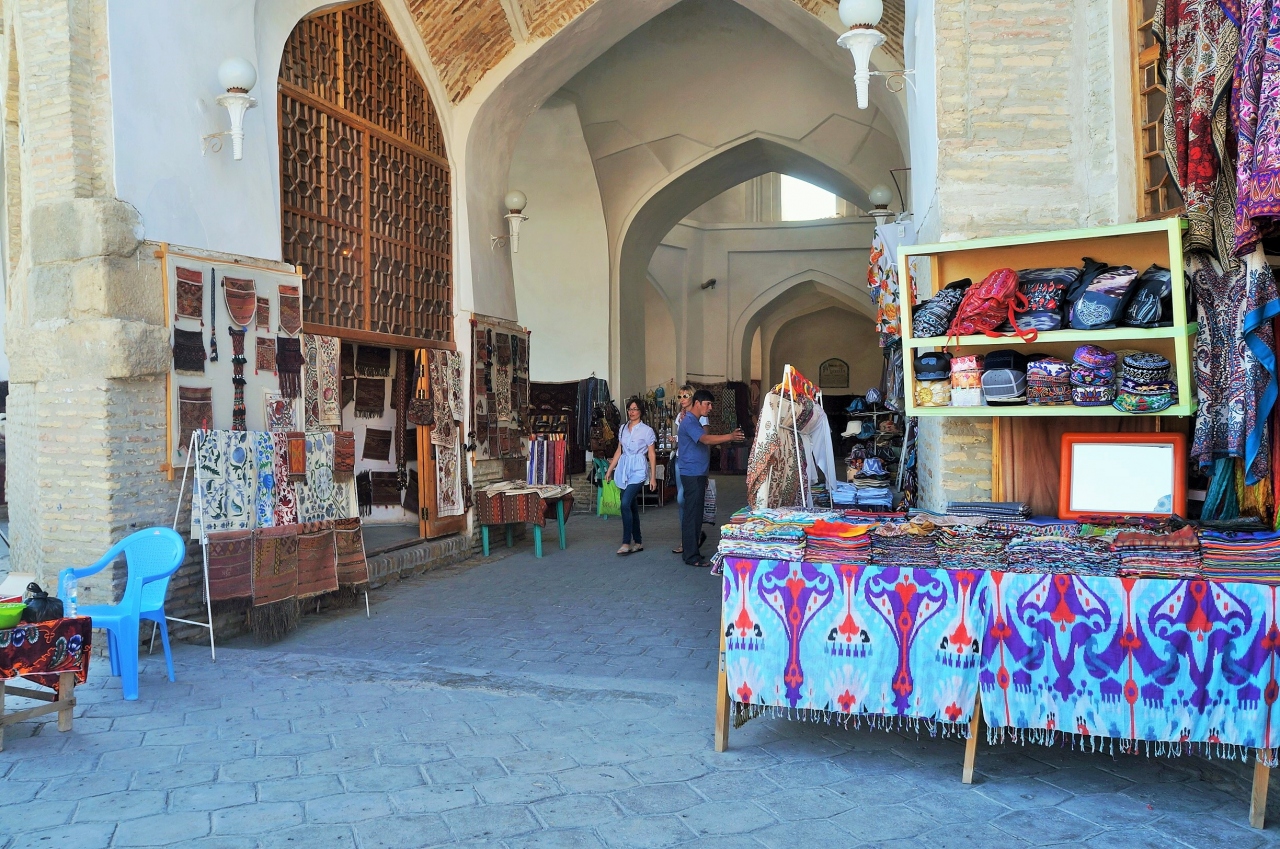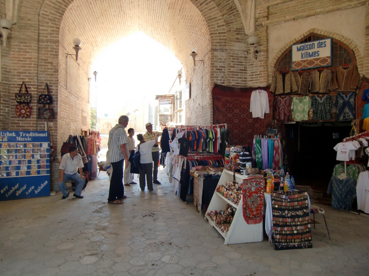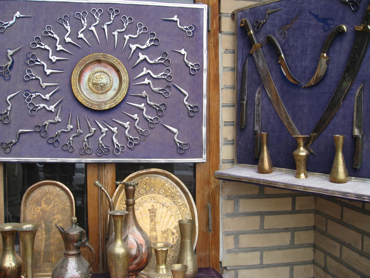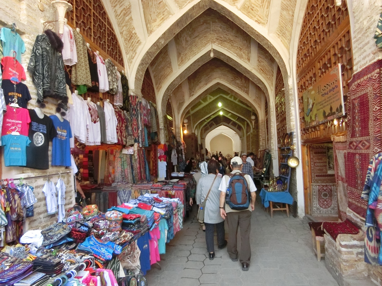 ラビハウスから近い順に、タ... 続きを読むキ・サラフォン、タキ・テルパクフルシャン、タキ・ザルガロンです。このうちショッピングが最も楽しいのはザルガロンで、職人直営の工房兼店舗などが並んでおり見ごたえあり。有名なブハラ名物・コウノトリのハサミもここで買え、自分が買った時はオスメスの1ペアで25ドル、袋付きでした。