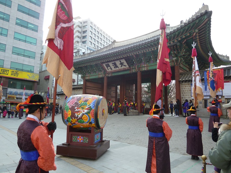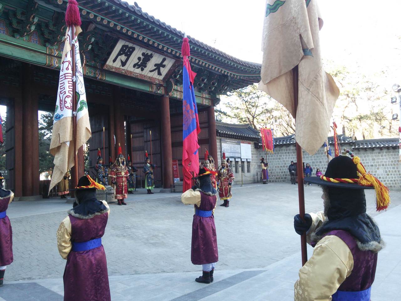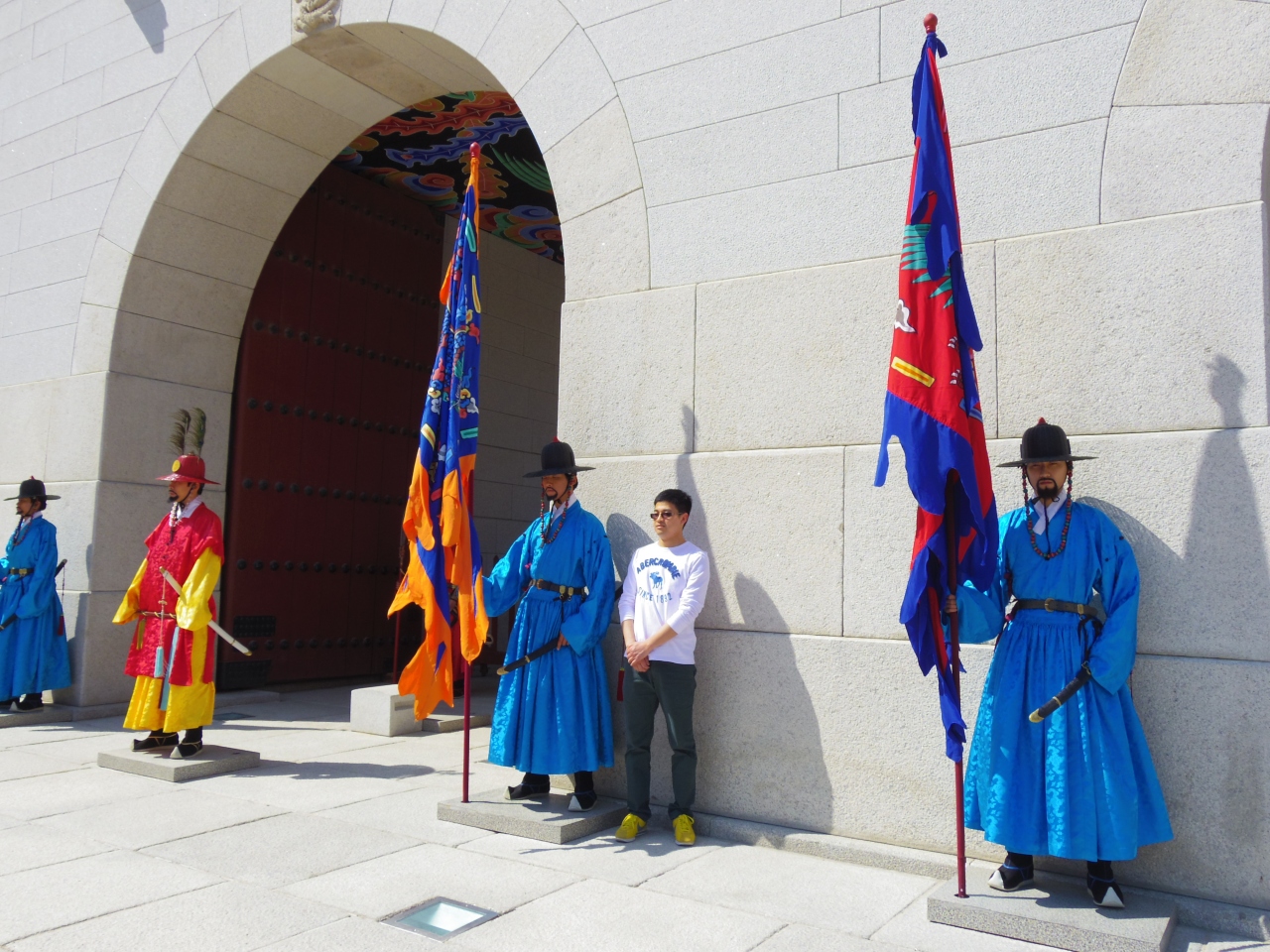 二人で門を守ります。この間に観光客との記念写真タイム。