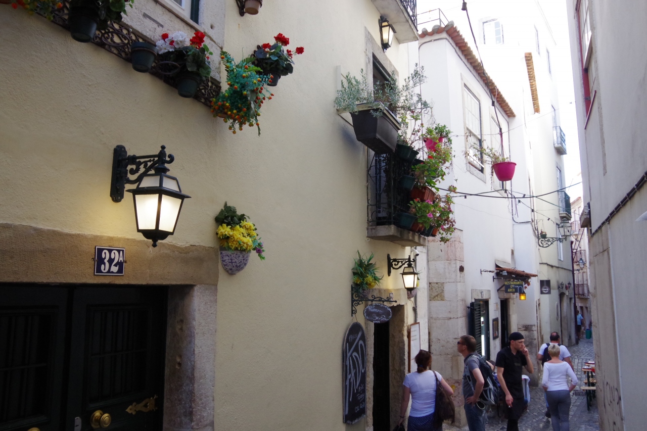 さらに「ポルタス・ド・ソル広場」脇の階段を下り、アルファマ地区の散策もお勧めです。 曲がりくねった路地や急な階段だらけですが、アルファマを彷徨うのは楽しいですし、イスラム情緒漂う街並みは一見の価値があります。 ファドを聴けるレストランも数多くあります。